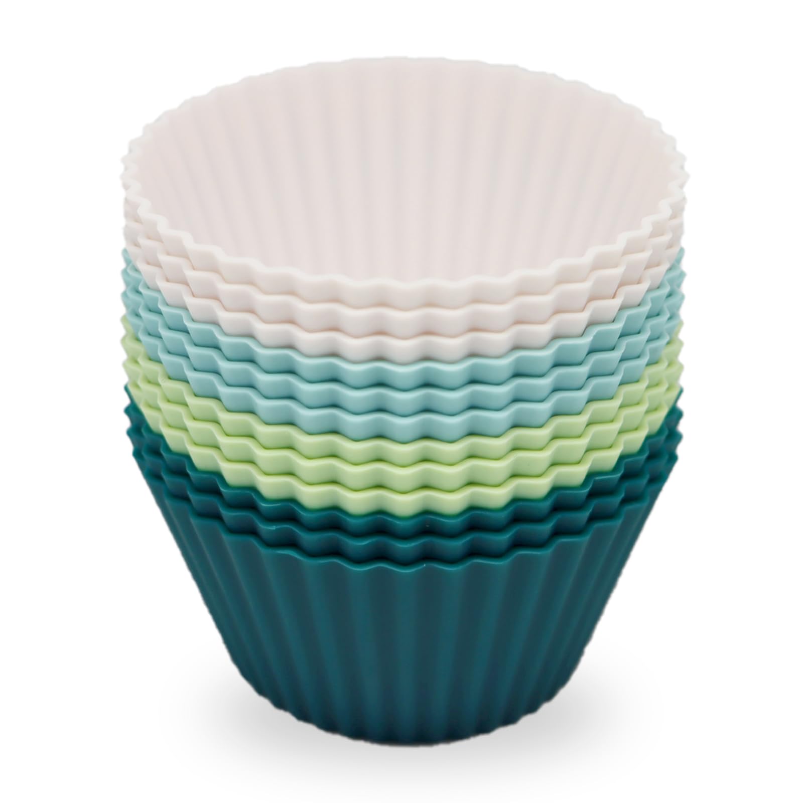 Silicone Baking Cups; Made of food-grade silicone, safety use.12 pack baking cups in 4 beautiful colors in paper box