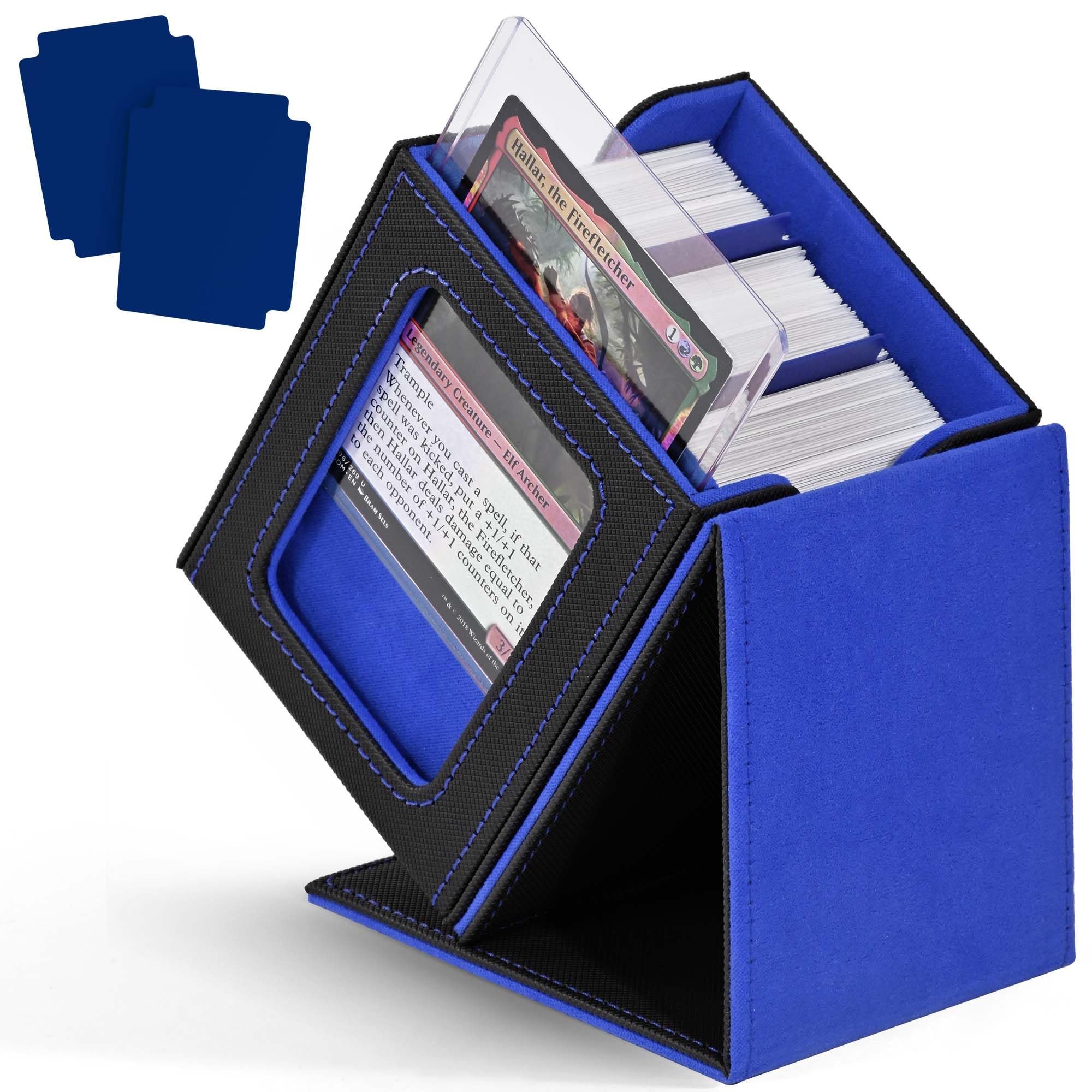 MTG Deck Box with Commander Window Display, Trading Card Storage Box Holds 100 Double-Sleeved Cards Suitable for TCG/CCG/PTCG/EDH/Magic/Sport Cards (Black&Blue)