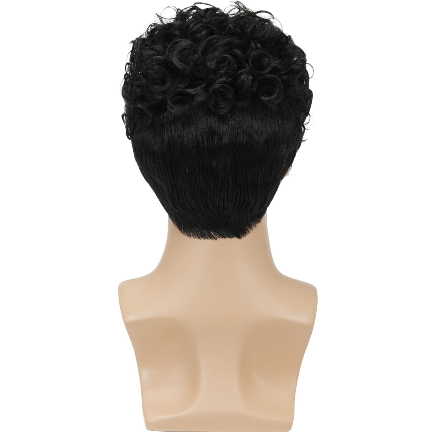 Men's Wigs Short Black Synthetic Wig with Bangs Curly Fake Hair For Male