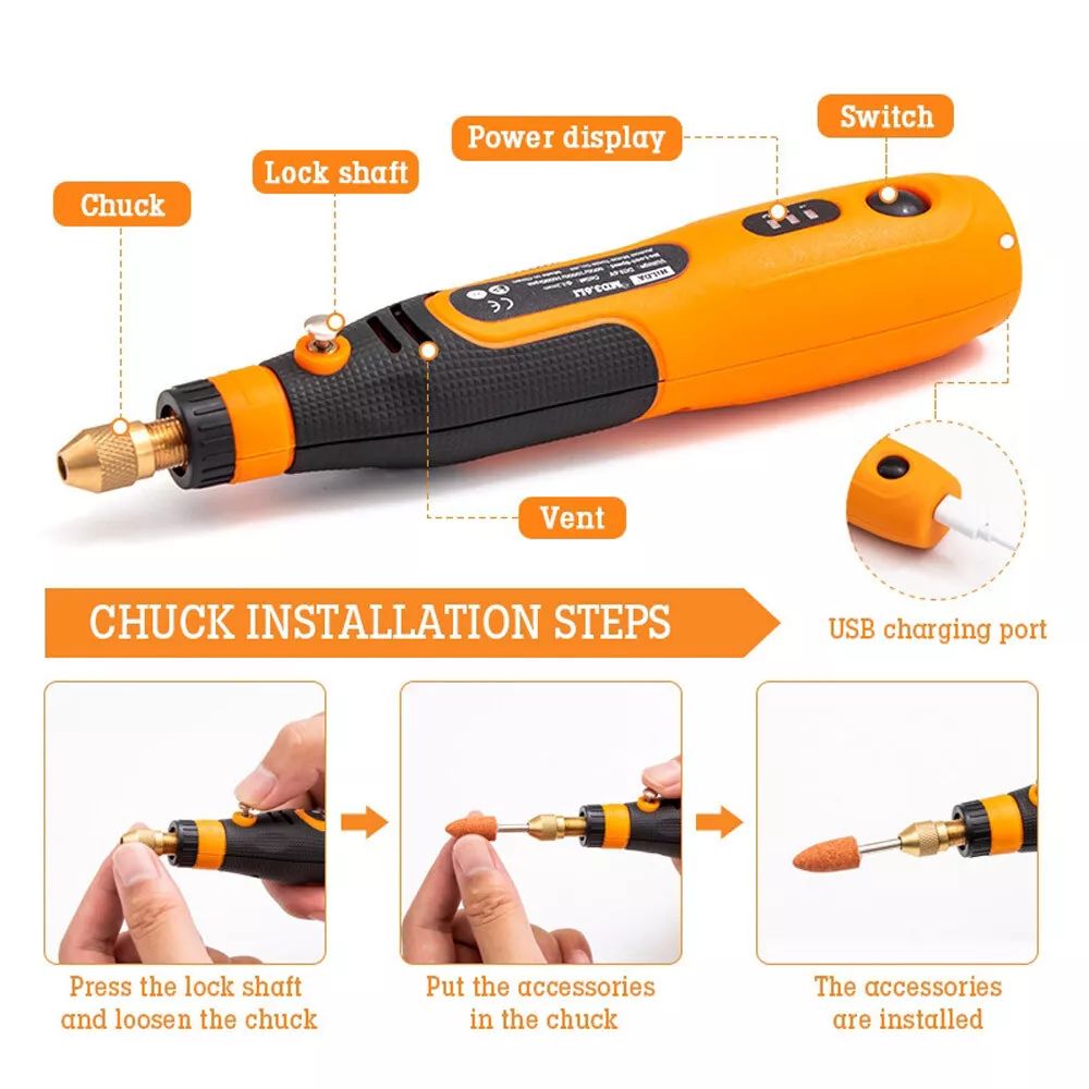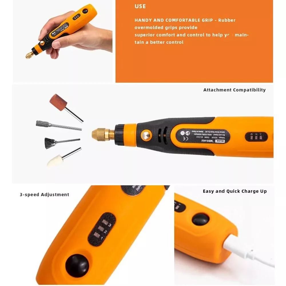 Compact Lightweight: Powerful but small and light, just like holding a pen while in use, for ultimate control and precision as well as for comfort. The mini-size rotary tool allows you to take it and use it whenever and anywhere.