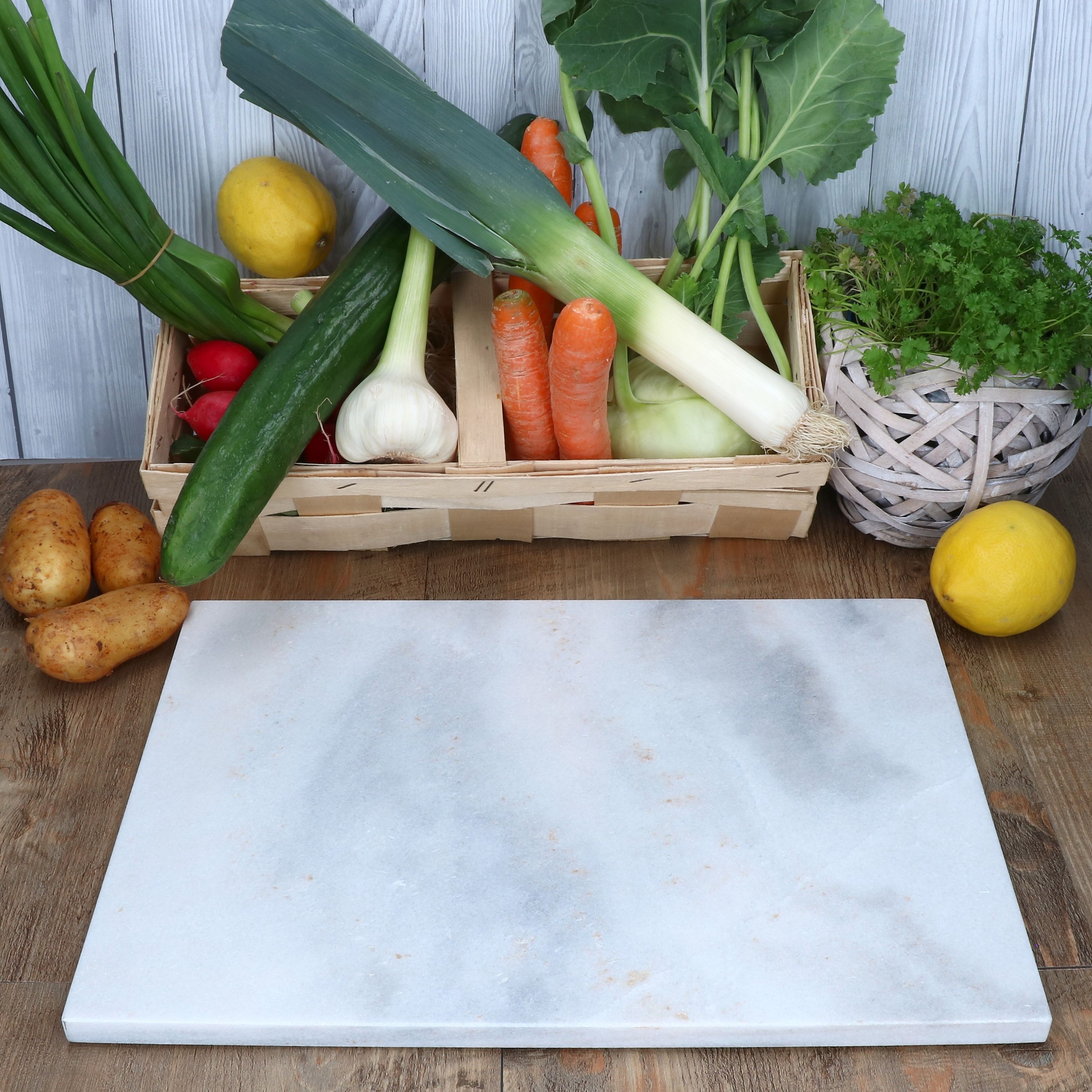 Dieses Marmor-Schneidebrett ist eine wunderschöne Unterlage beim Schneiden und Garnieren Ihrer Speisen.
