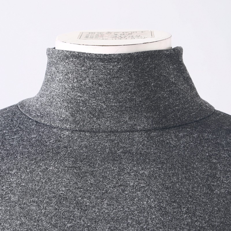 Solid color, high neck, long sleeve, slim fit basic pullover t-shirt, suit for cold weather.