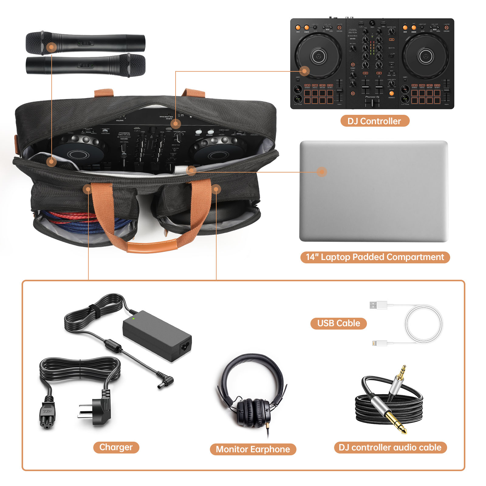 Features: l Made of high quality material, not easy to deform, solid and durable, long lifetime l Large accommodation space, can store DJ controller, 14 inches laptop padded compartment, charger, monitor earphone, USB cable and DJ controller audio cable l Double solid zipper, smooth and effortless, convenient to take something l Also suitable for long journey, party and performance l Can be carried on the shoulder or in the hand Specification: l Size: 14x11x5 inches l Quantity: 1 PCS l Applicable Models: for Pioneer DJ DDJ-FLX4/Pioneer DJ DDJ-REV1/Numark Mixtrack Platinum FX Package: l 1x Storage Bag Note: l Only the above package content, does not include other accessories