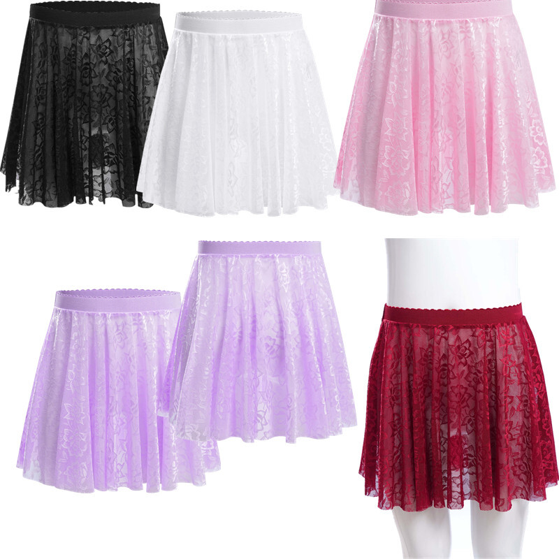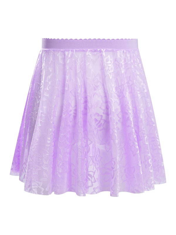 Elastic waistband with ripple trimming, skirt is designed with floral lace pattern.