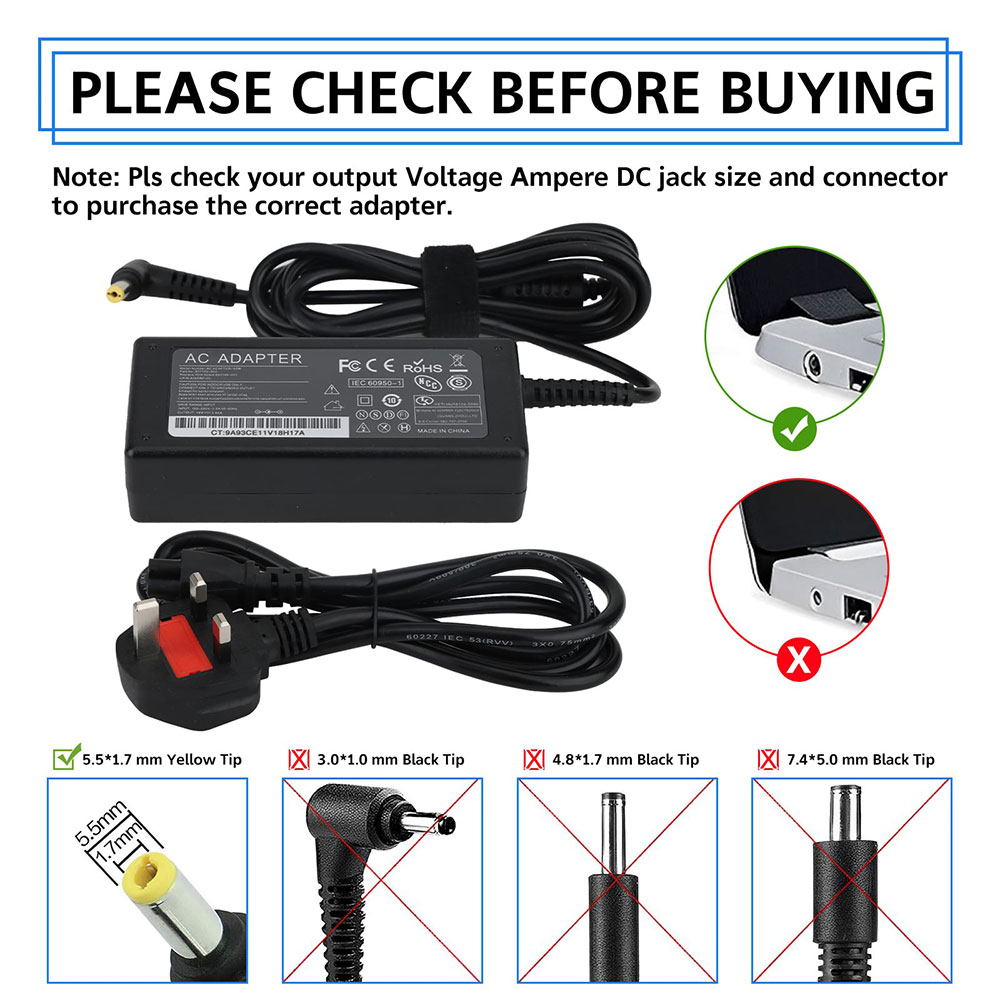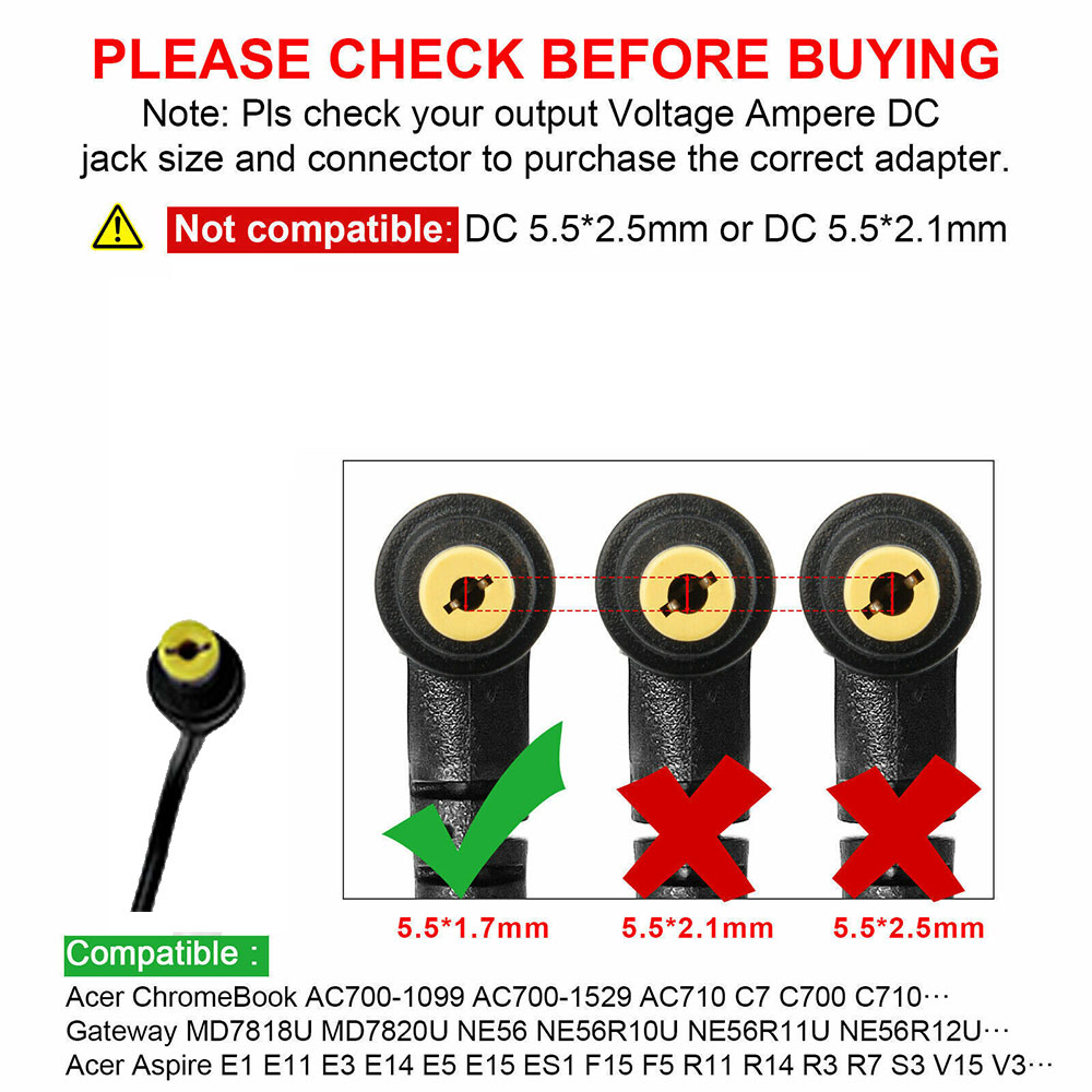 Compatible with Acer Aspire Charger 3 5 E1 E3 E5 ES1 S3 V3 V5 R7 F5 M5 Series