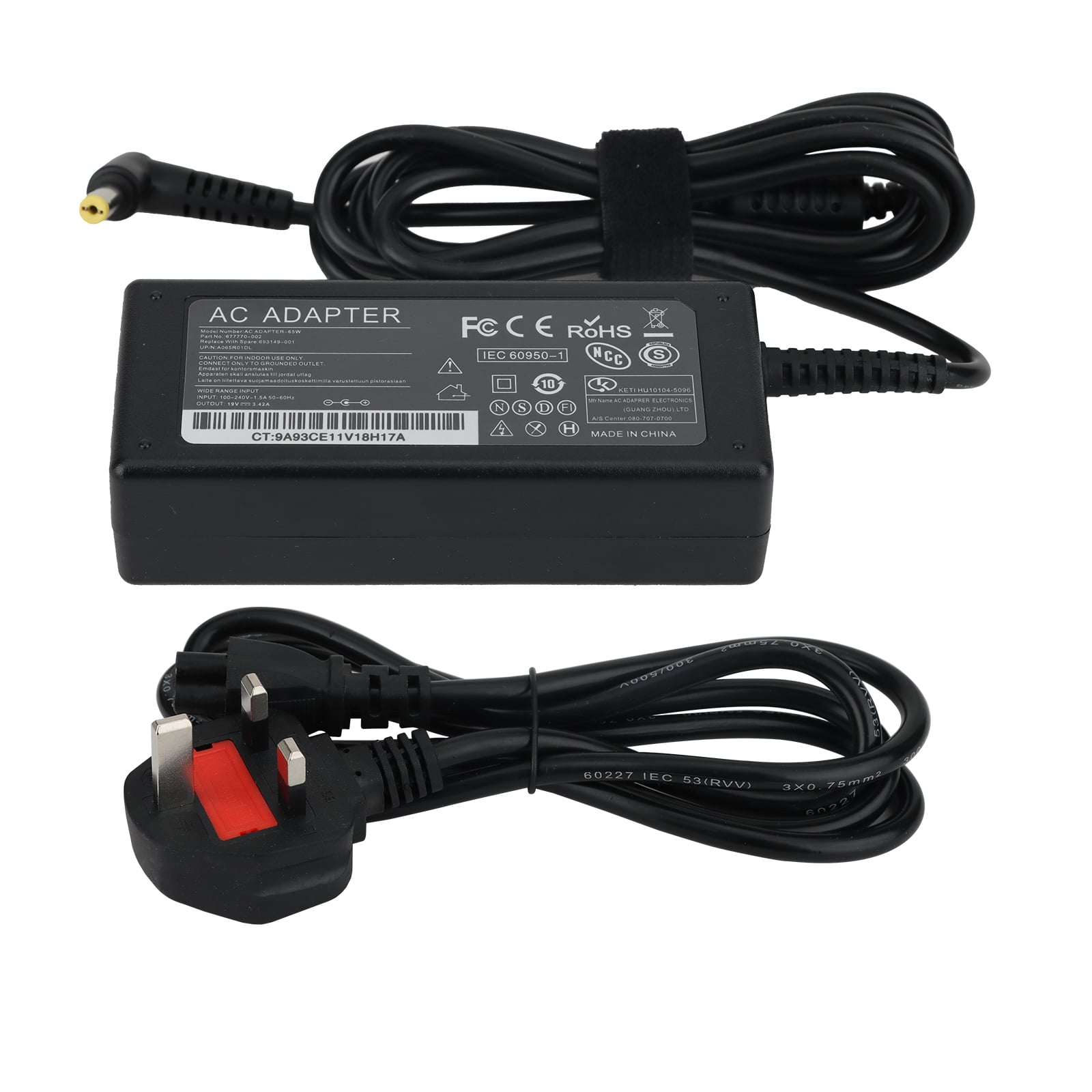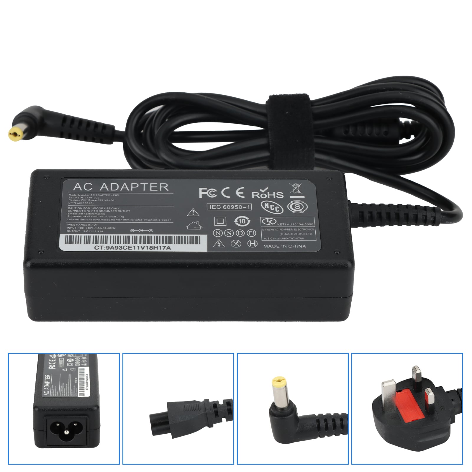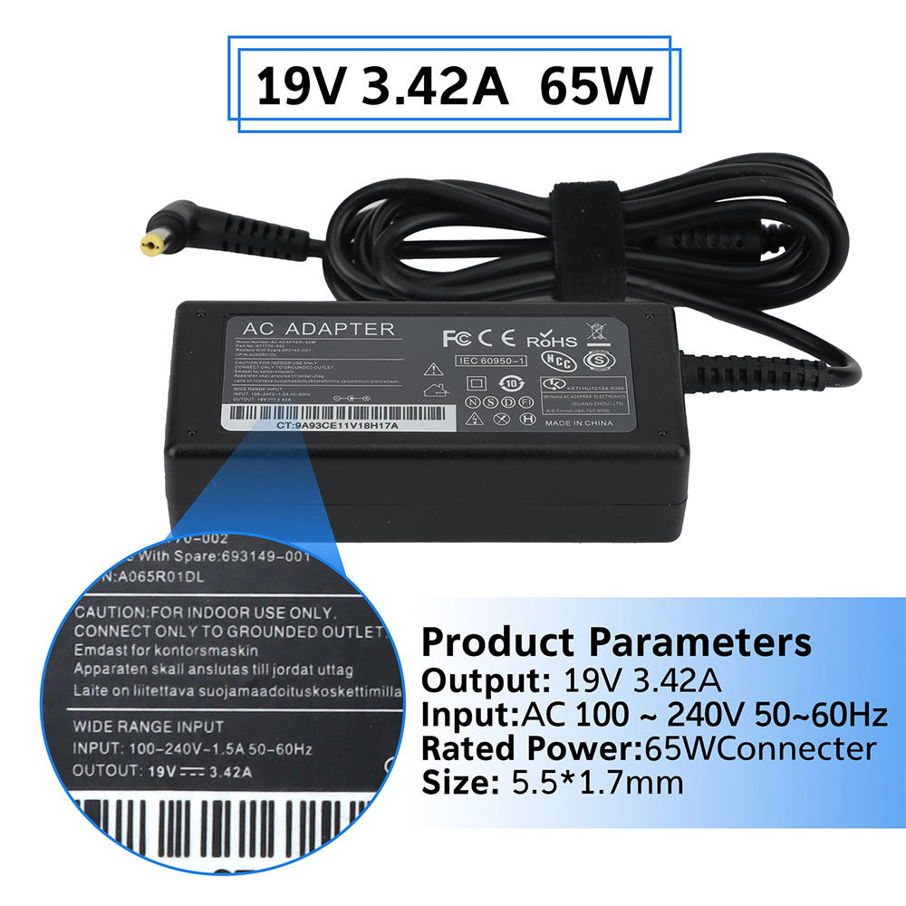 Input Volt Range: 100-240V / Output: 19V 3.42A 65W