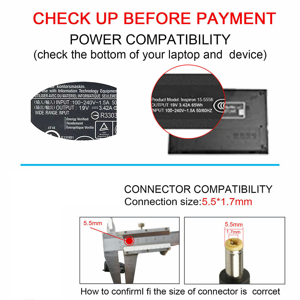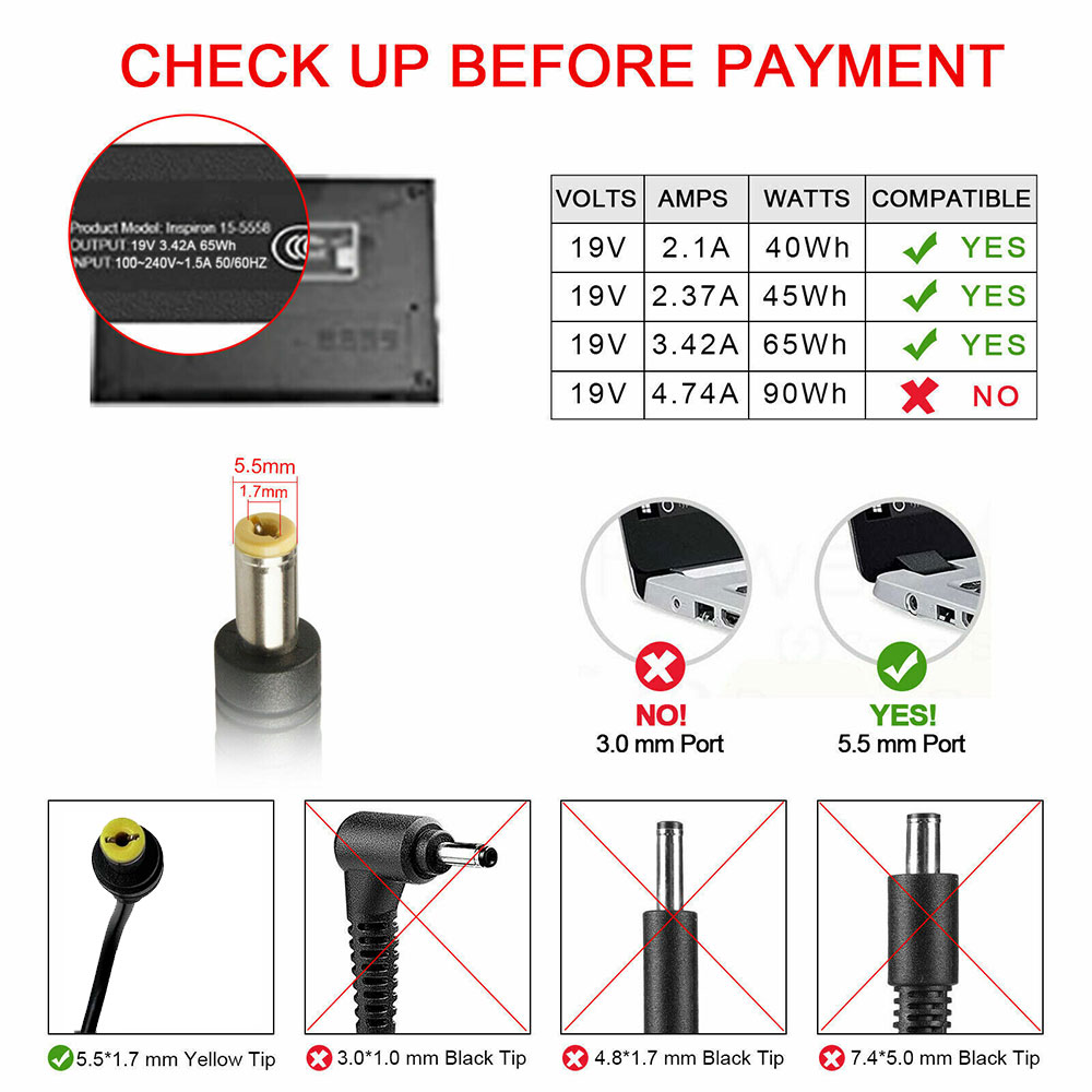 (Compatible with 19V 2.37A 45W and 19V 2.1A 40W as well).