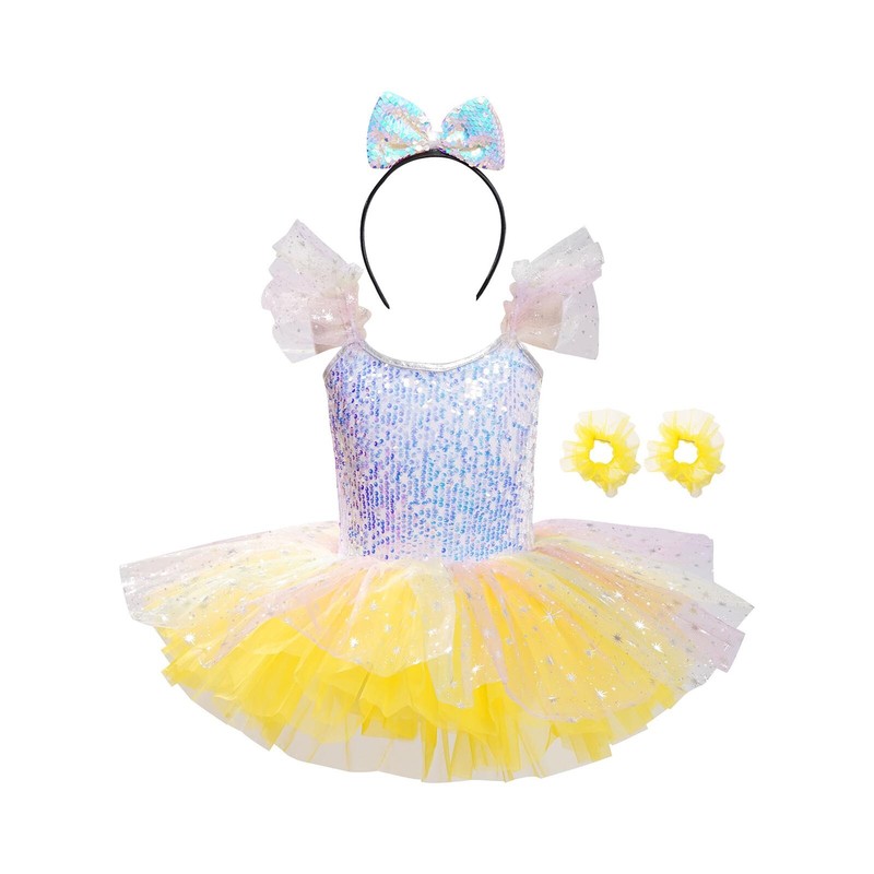 Girl’s tutu dress makes your child the spotlight of any party. Complete the look with a bowknot hairband and two tulle wristbands.