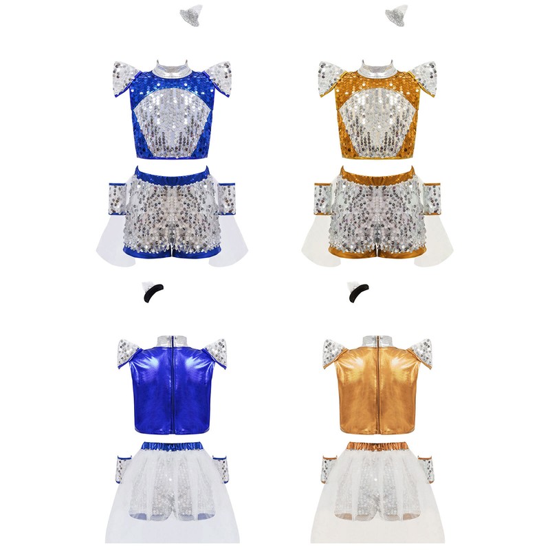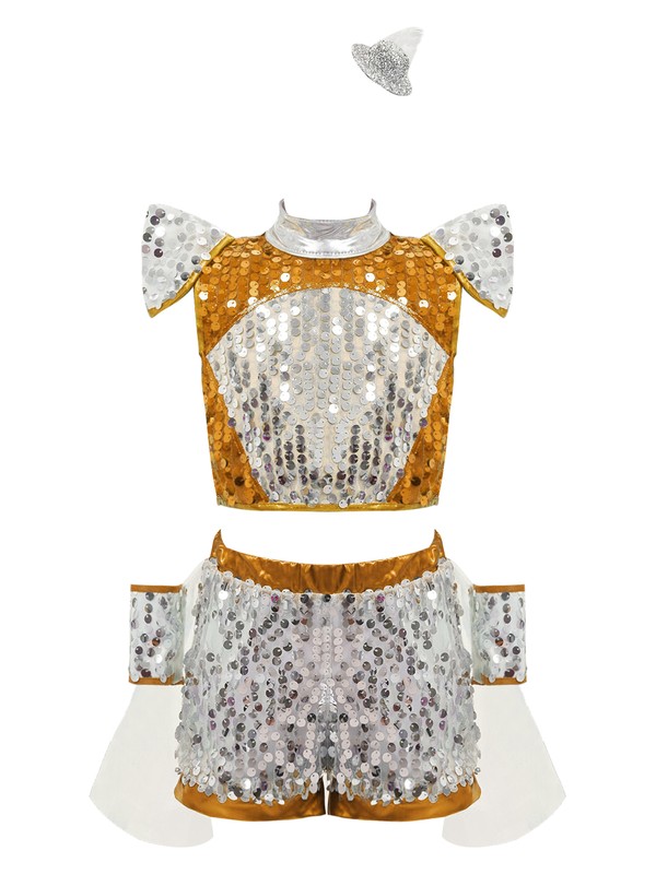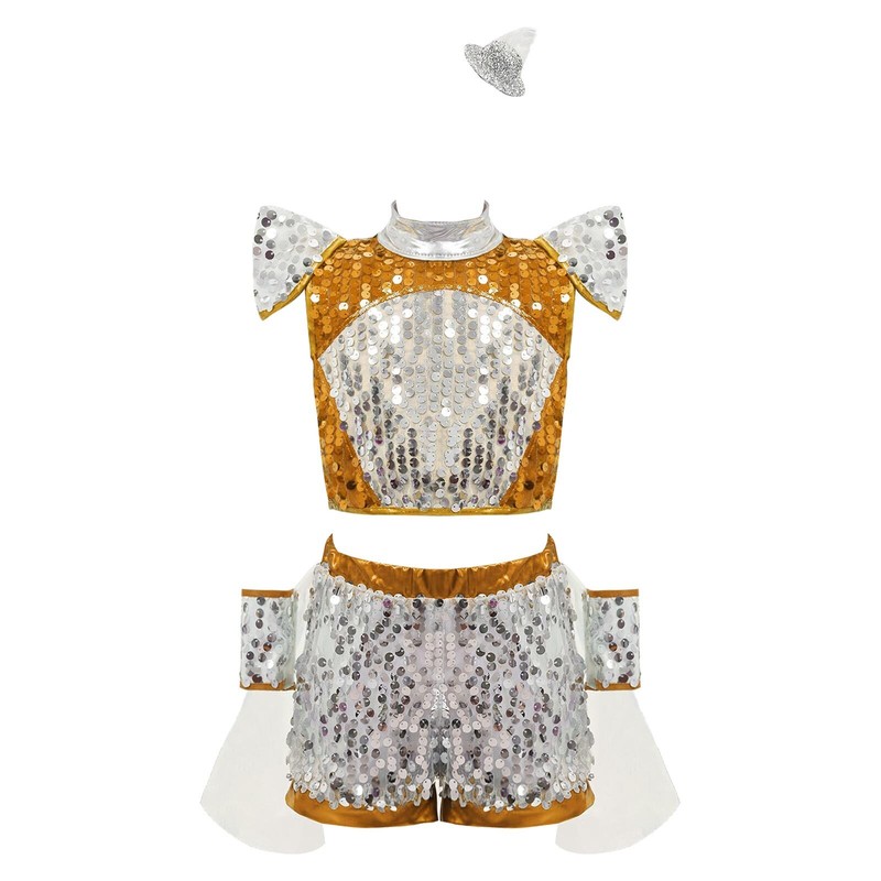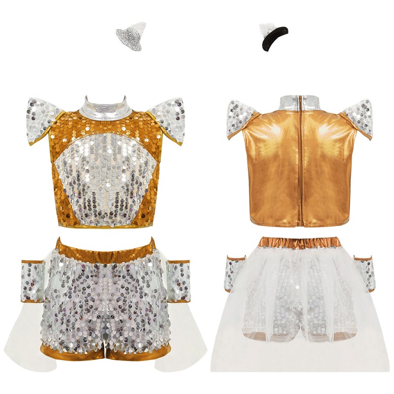 Girl’s shiny sequins dance outfit is eye-catching enough to make your child the spotlight of any party.