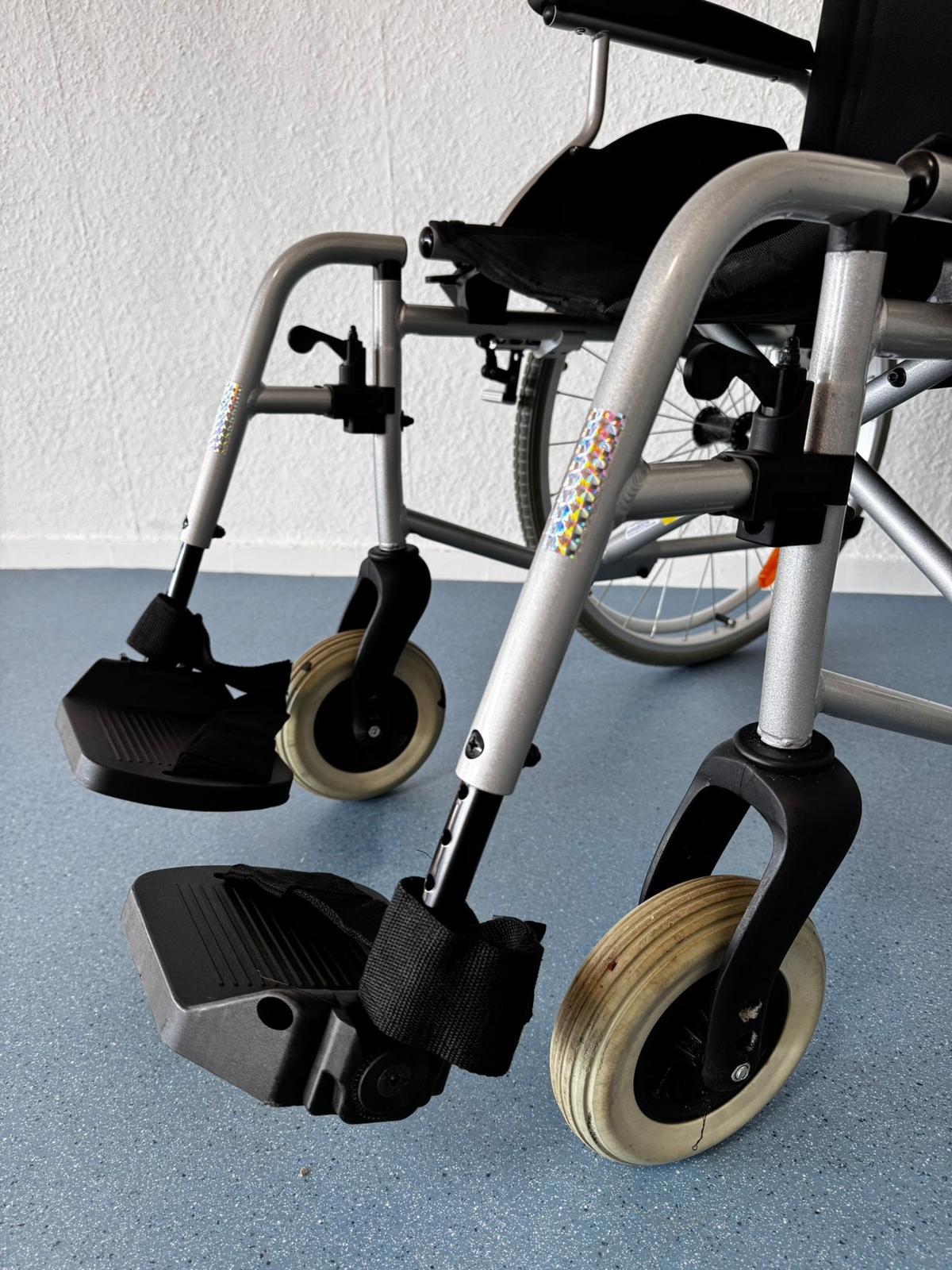 | Ausstattung des Rollstuhls: | Geteilte Fußauflagen |