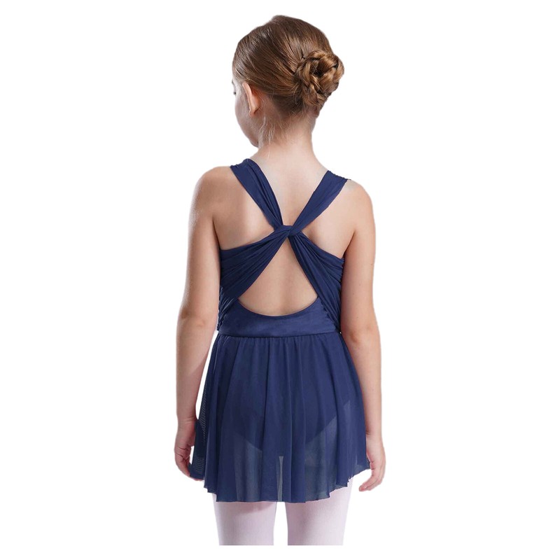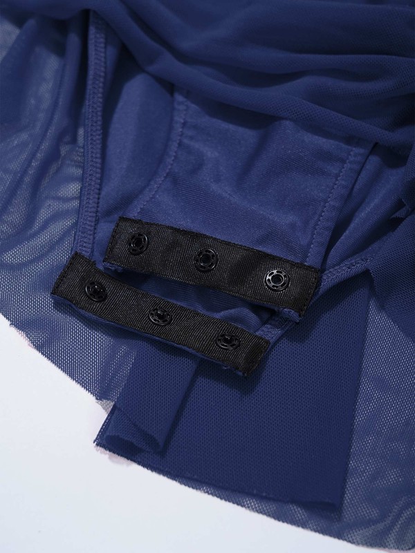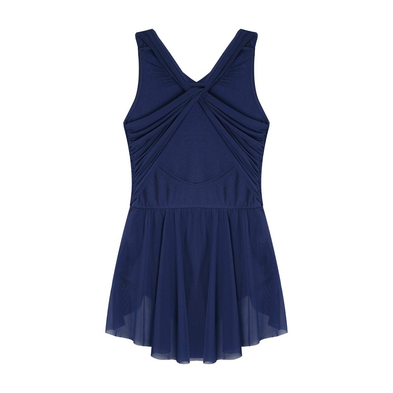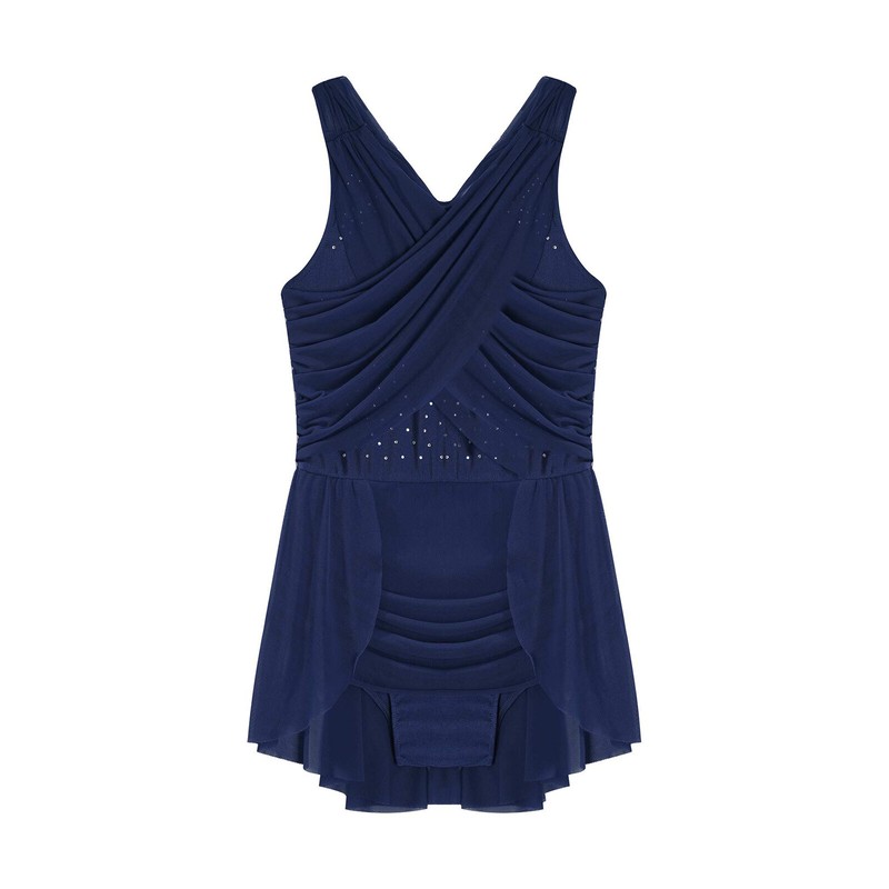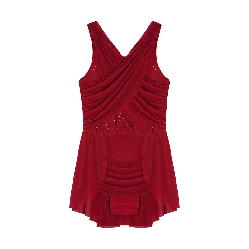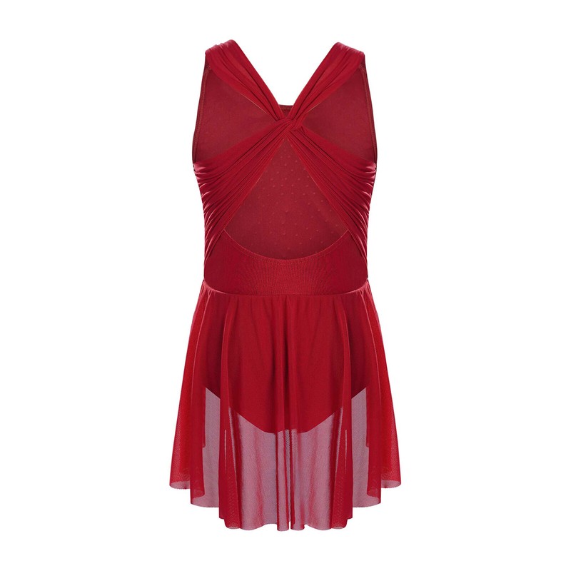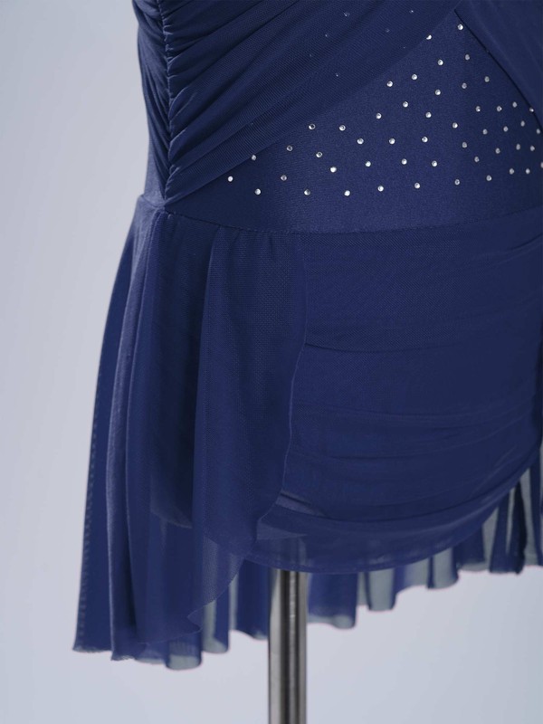 Built-in briefs provide extra coverage. Irregular mesh skirt with flowy and split design shows the beauty of dance.