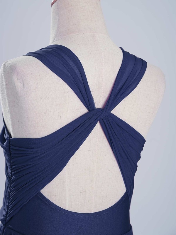 Ruched cross mesh overlay bodice is decorated with shiny rhinestone to makes your child look stunning.