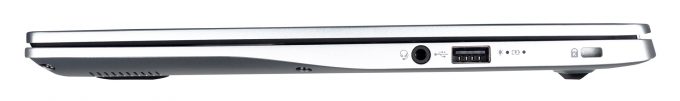 On the left side, you get the power plug, a USB Type-C 3.2 (Gen. 2) port that can be used for data, power delivery, and DisplayPort output. Next, there is an HDMI connector, as well as a USB Type-A 3.2 (Gen. 1) port. And on the right, there is one USB Type-A 2.0, and an audio jack.