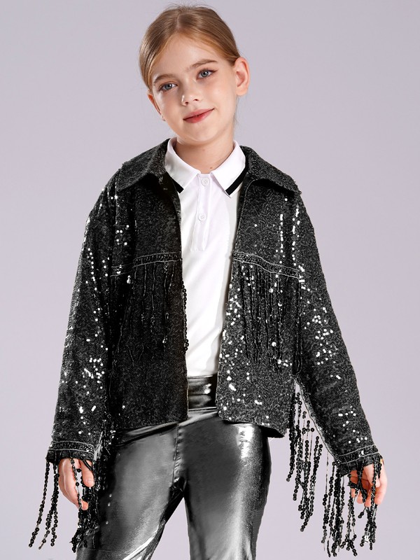 Girl’s jacket is decorated with sequins sparkles under the light to make your girl stand out from the performance.