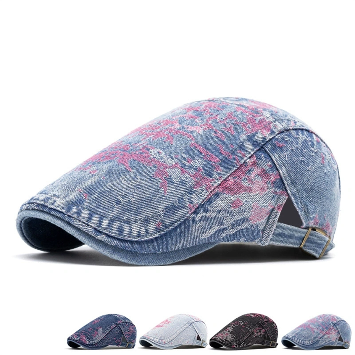 Men Beret Hat Denim Flat Cap Newsboy Gatsby Hat Cotton Women Cabbie Hats Summer