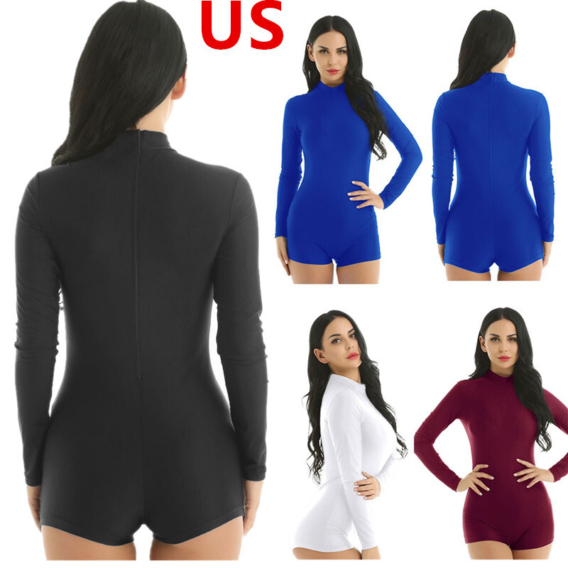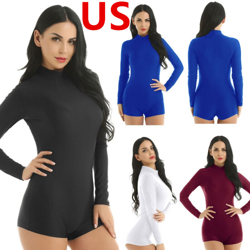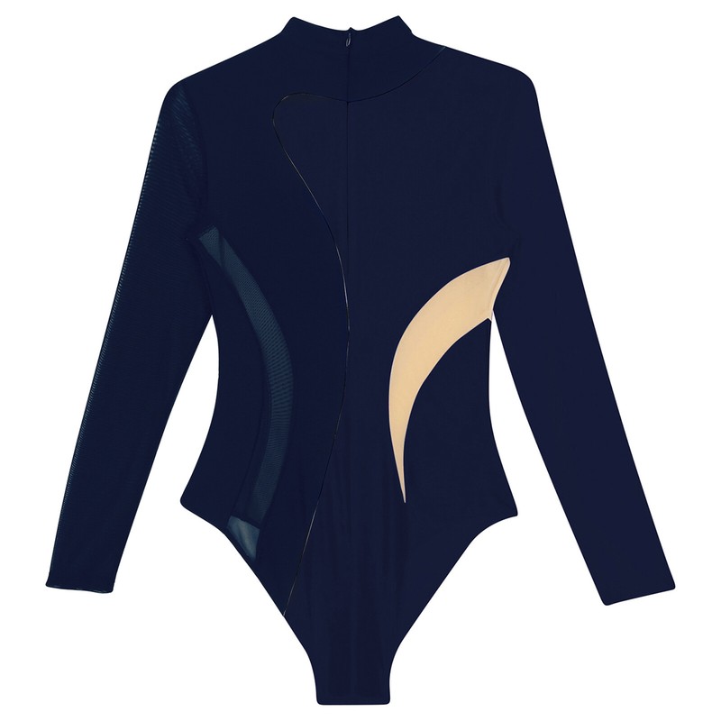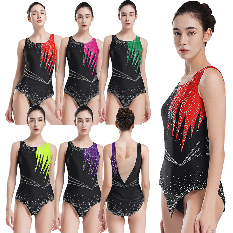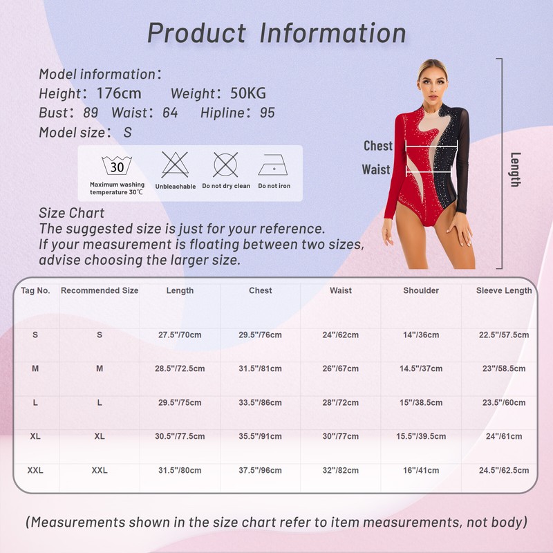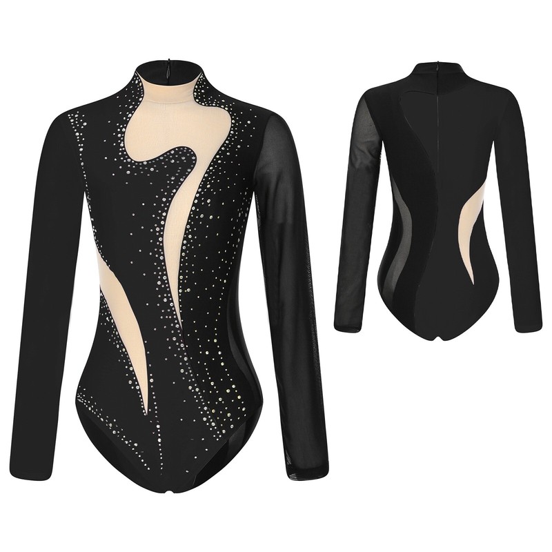 Long sleeve leotard for women, decorated with sparkling rhinestone, color block, looks distinctive.