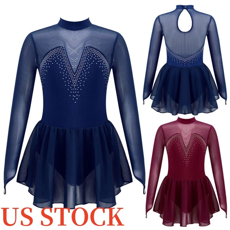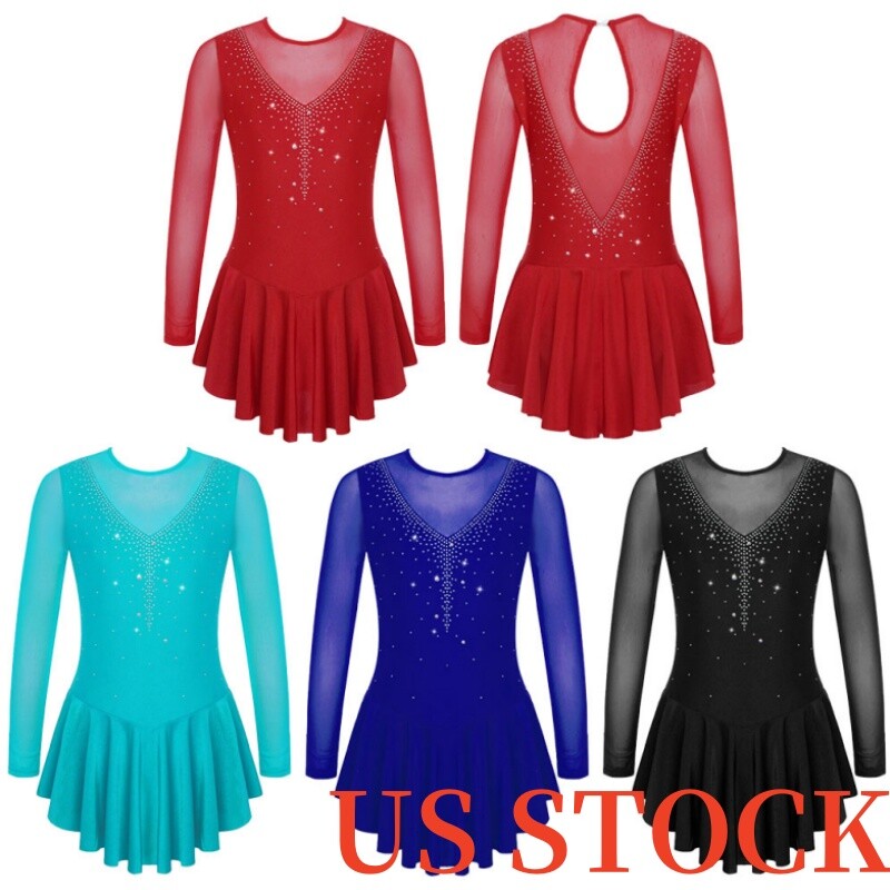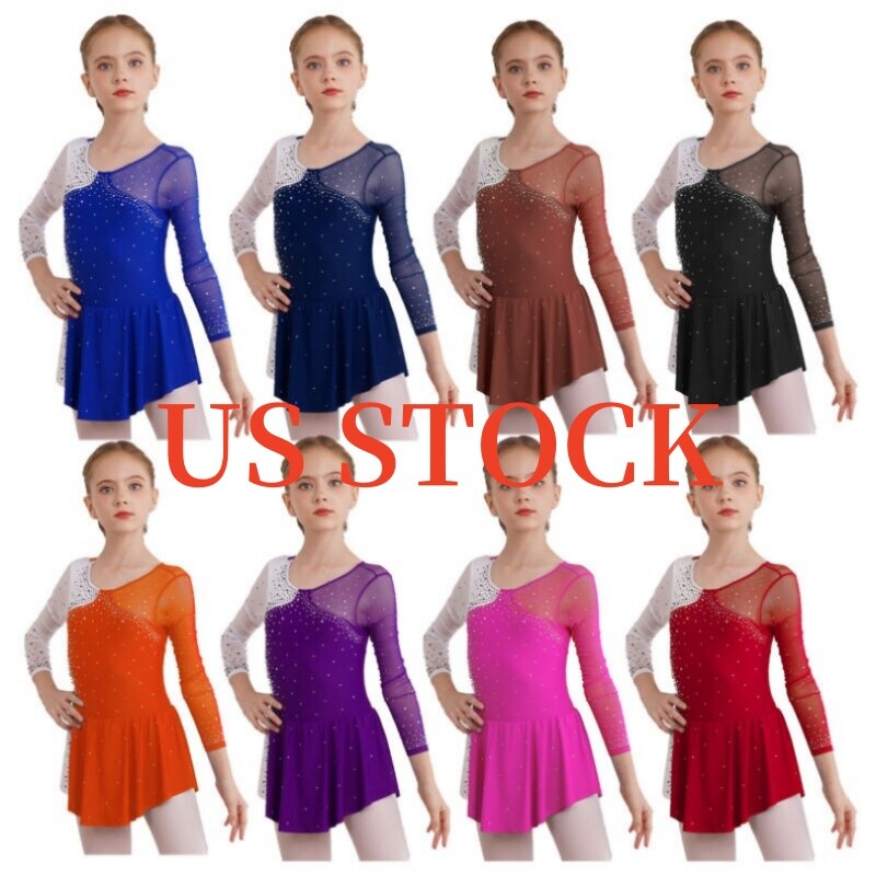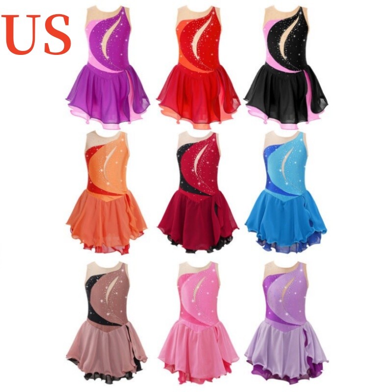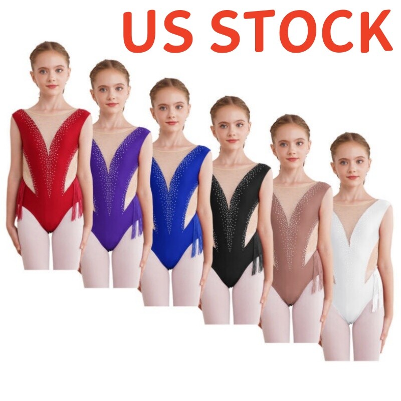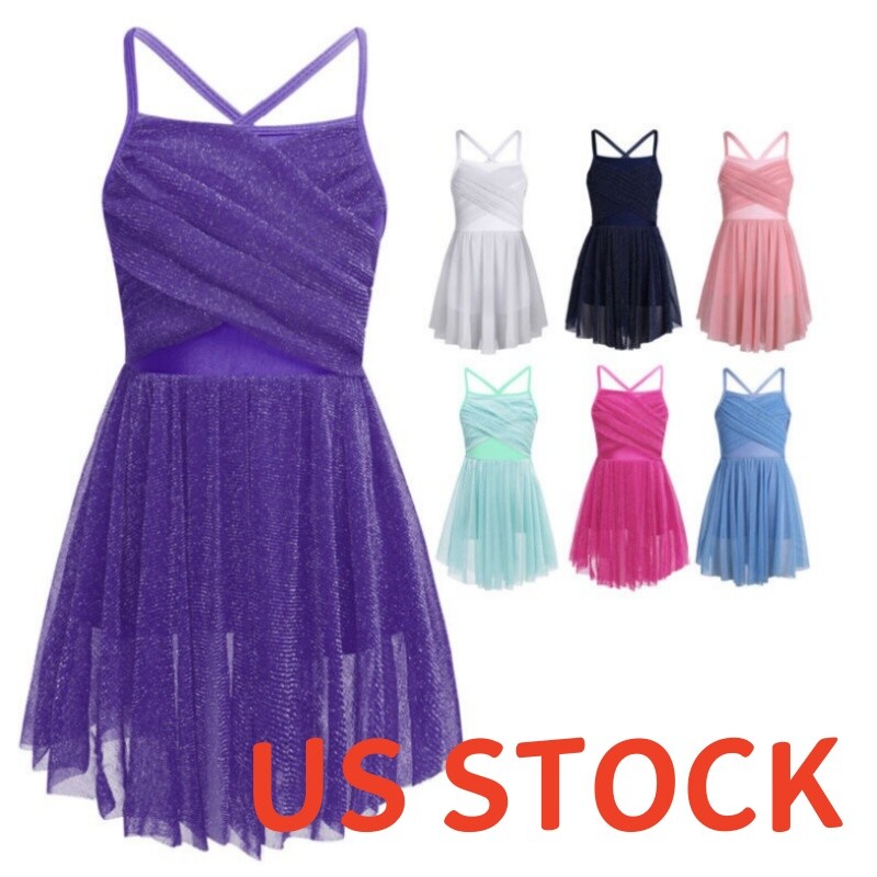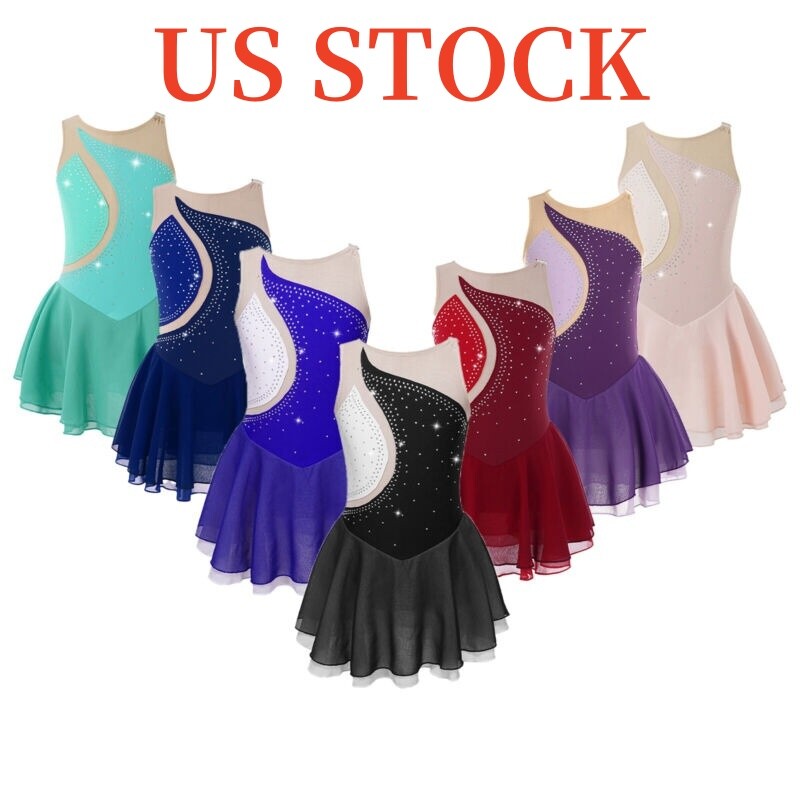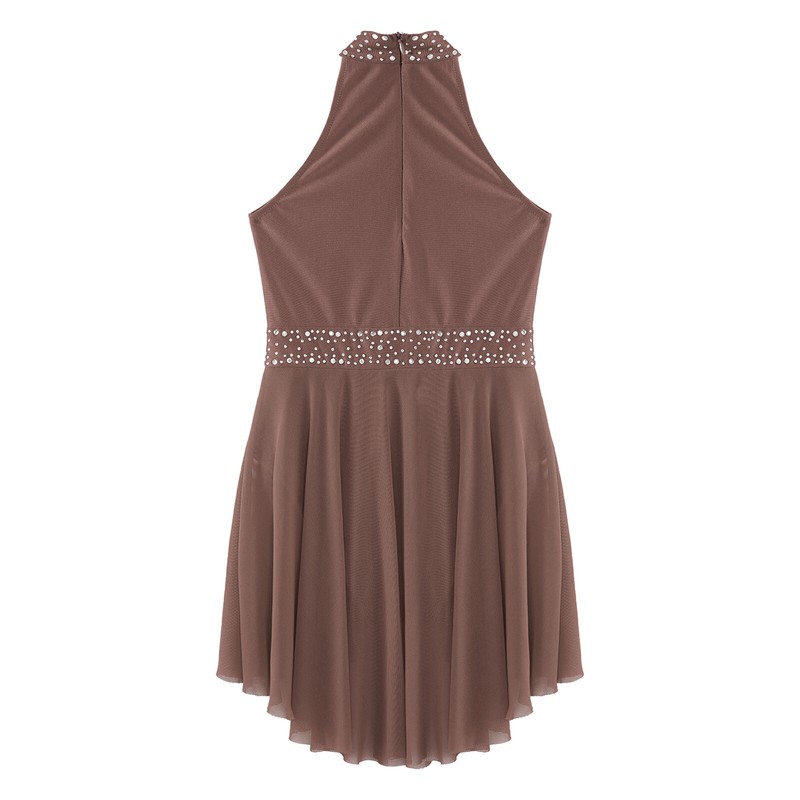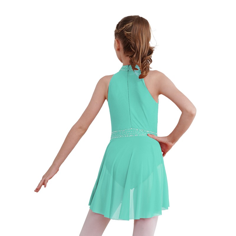 Sleeveless dance dress for girls, embellished with rhinestones, sparkle under the light to brighten up any performance.