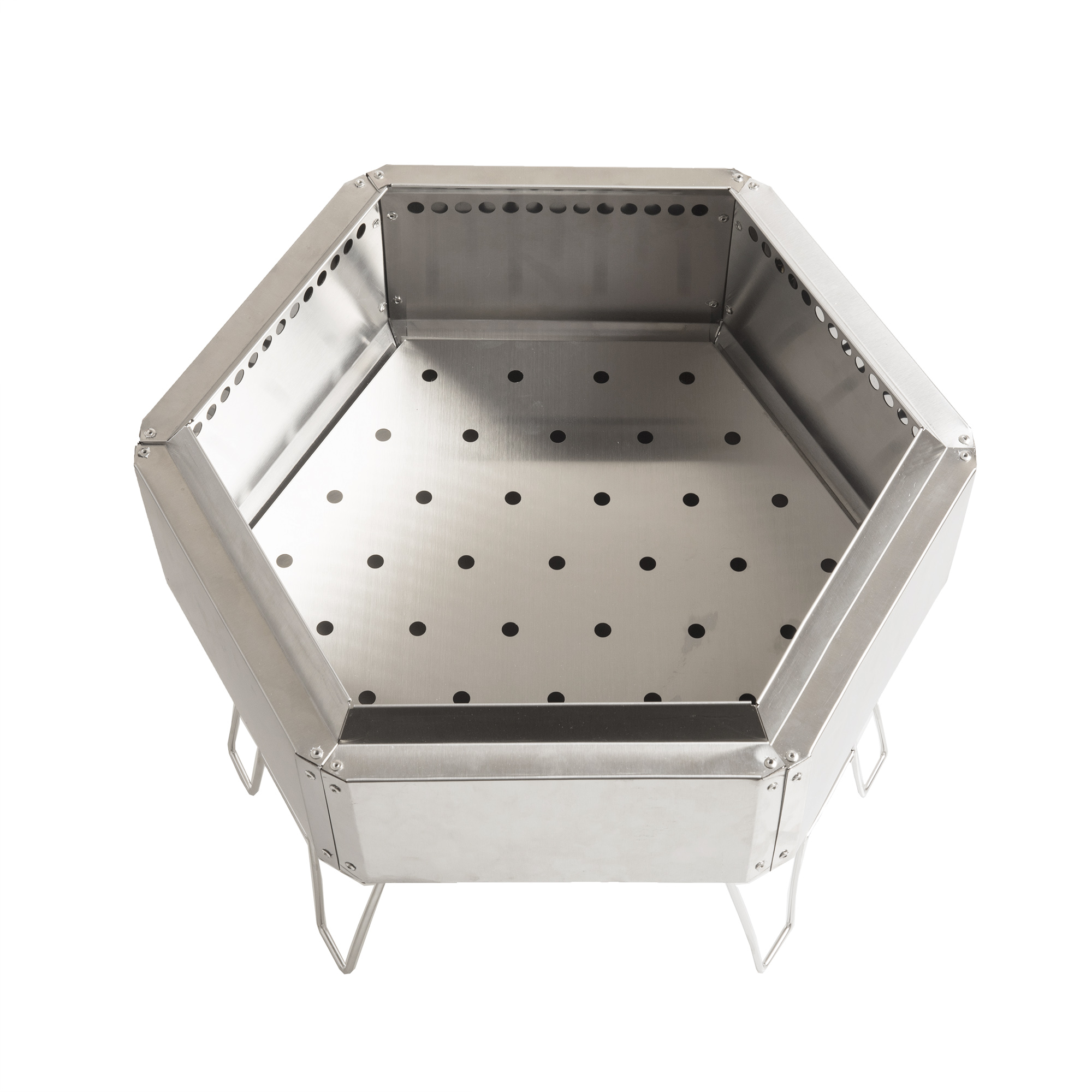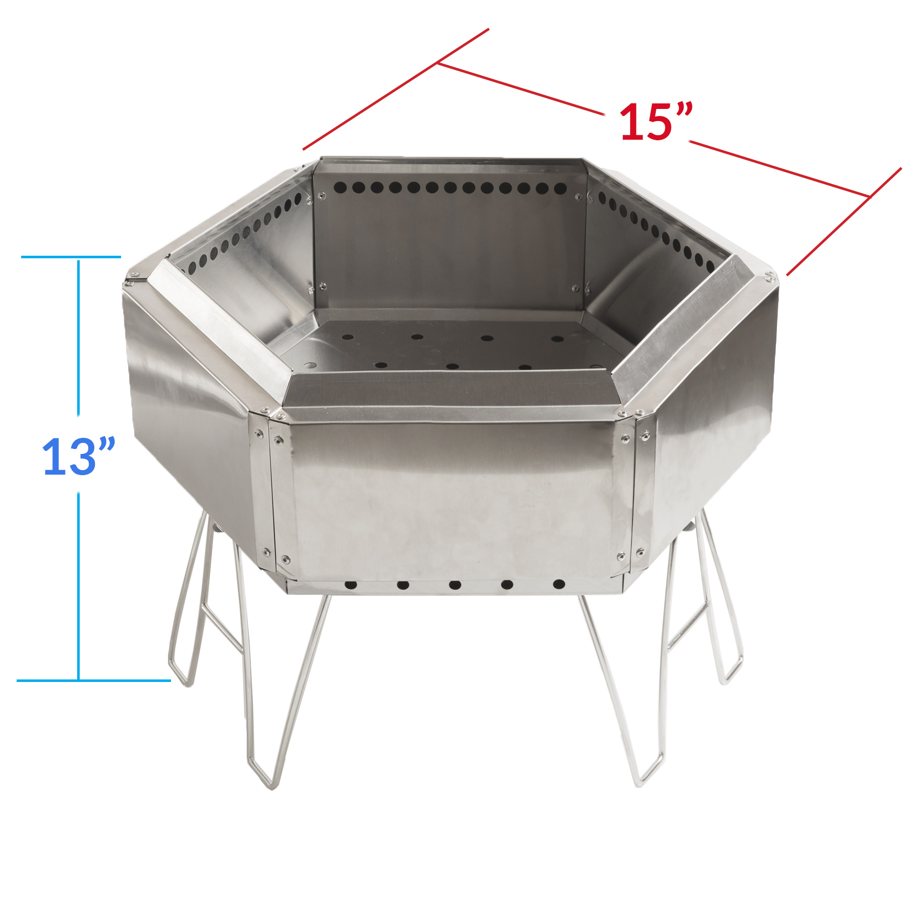 15" Portable Stainless Steel Fire Pit, Hexagon Smokeless Bonfire Wood Burning