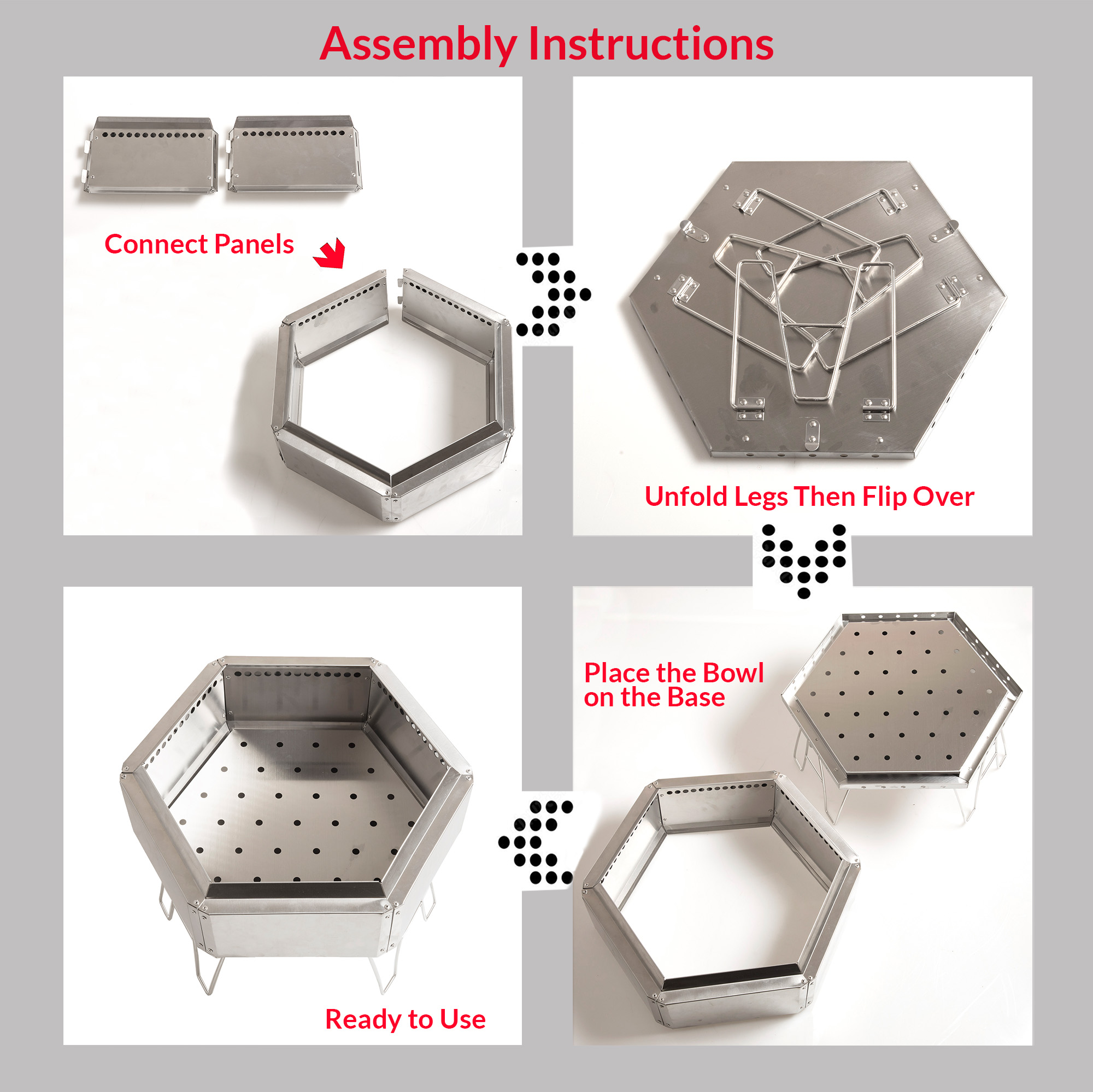 - PORTABLE DESIGN: Unique Hexagon shape and collapsible design for easy transport on your trips, removable fire bowl for simple cleanup, and foldable legs that make packing and setup a breeze.