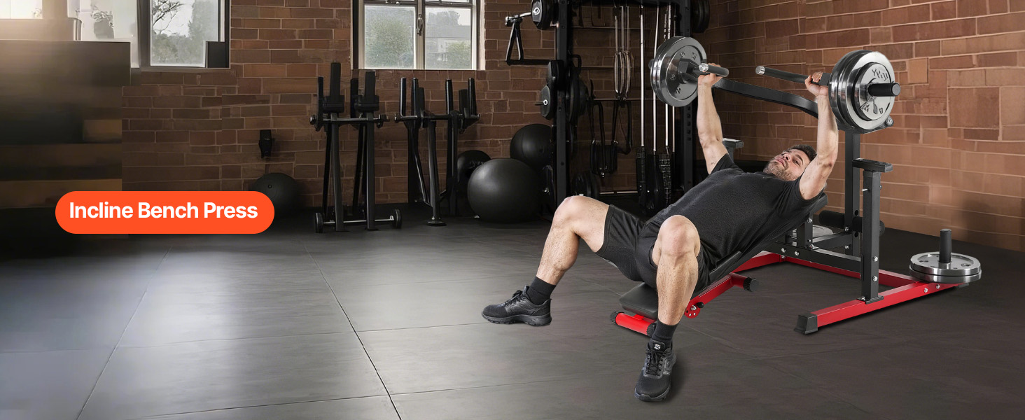 - Barbell Plate Holder: The adjustable flat incline bench is compatible with 1 & 2-inch weight plates, making it easy to use plates of different diameters. You can perform exercises like leg presses, bench presses, and more. The multi-functional, foldable design meets a wide range of fitness needs