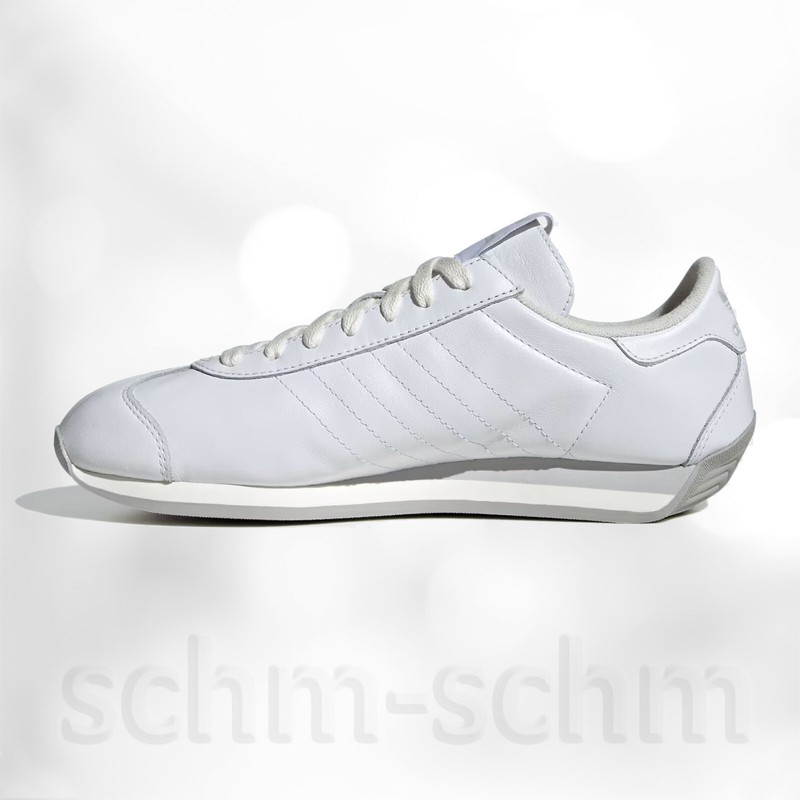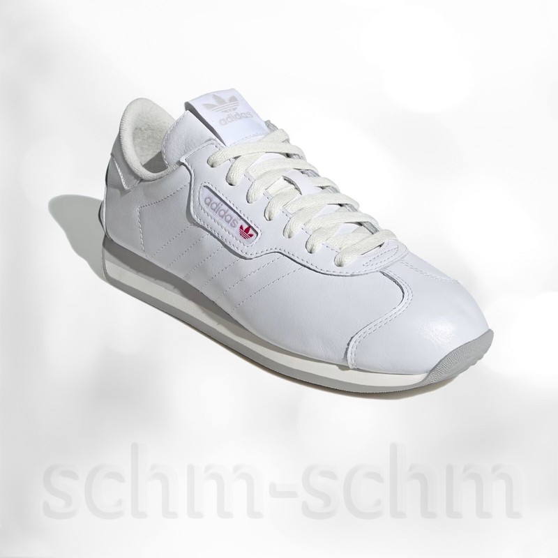 The Adidas Country Soft Cloud White / Grey Two sneakers are a contemporary reimagining of a classic silhouette that first made its appearance several decades ago. Known for its retro-runner aesthetic, the Country model combines classic design elements with modern comfort technology, making it versatile for both casual wear and athletic endeavors. The Soft Cloud White colorway exudes a clean, minimalist vibe, providing an effortlessly stylish look that aligns well with various outfits and occasions. The subtle addition of Grey Two accents adds depth and character to the overall design, making it an attractive choice for those who appreciate understated elegance in their footwear. |