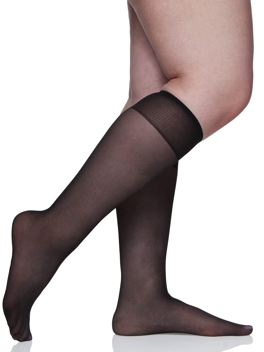 Description This is Berkshire's 3-Pack verions of style 6351. This Plus Size Knee hi features an All Day Sheer leg with a sandalfoot toe. A great value.