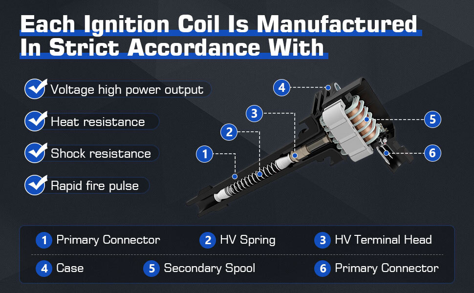 Package including: 6pcs Ignition Coil + 6pcs Iridium Spark Plug