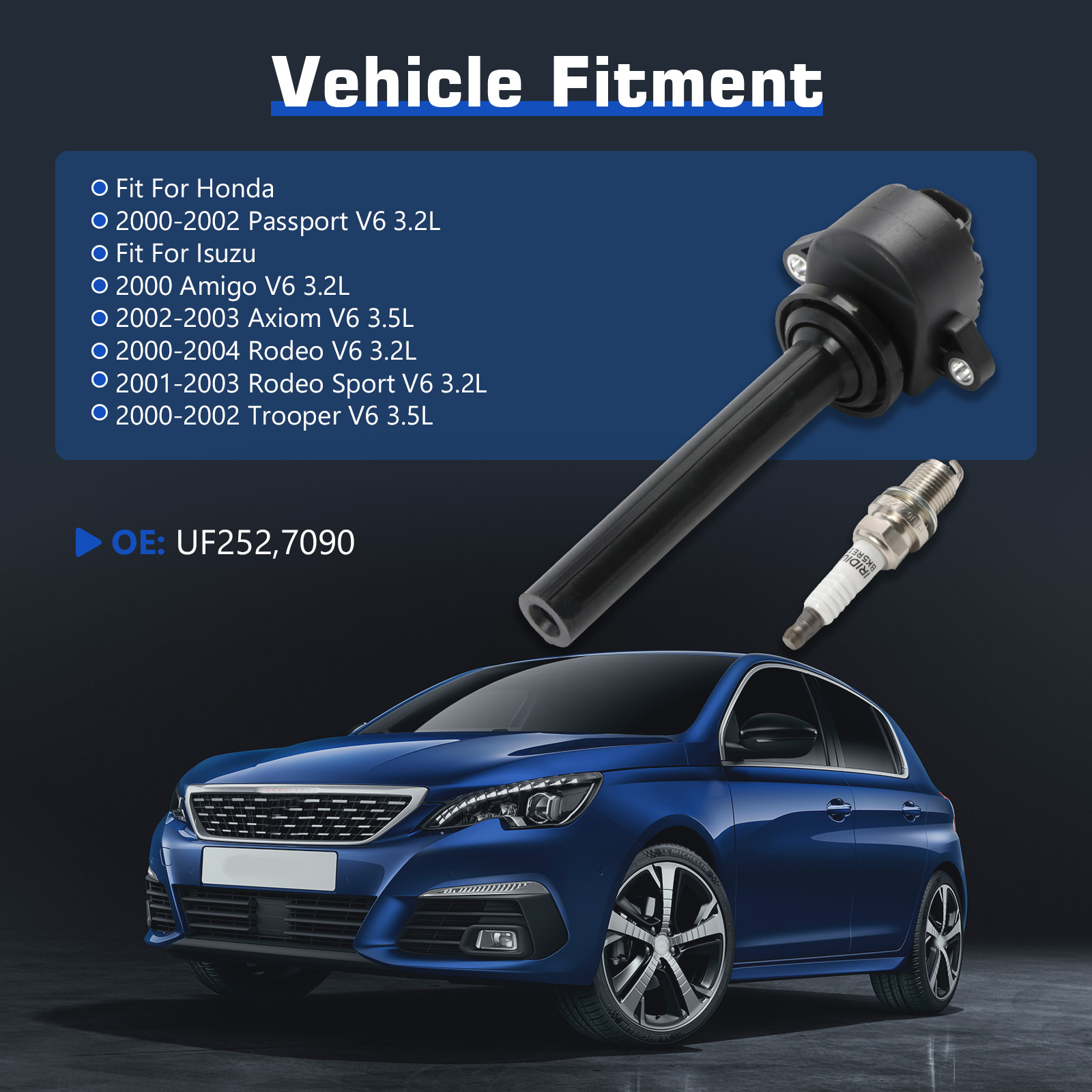 6pcs ignition coils+ 6pcs Iridium Spark Plugs for 2000-2002 Honda Passport UF252+7090