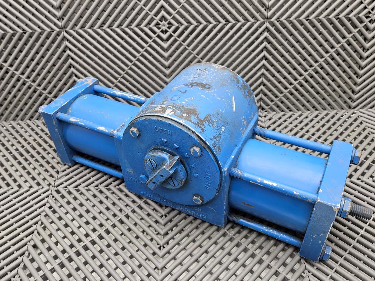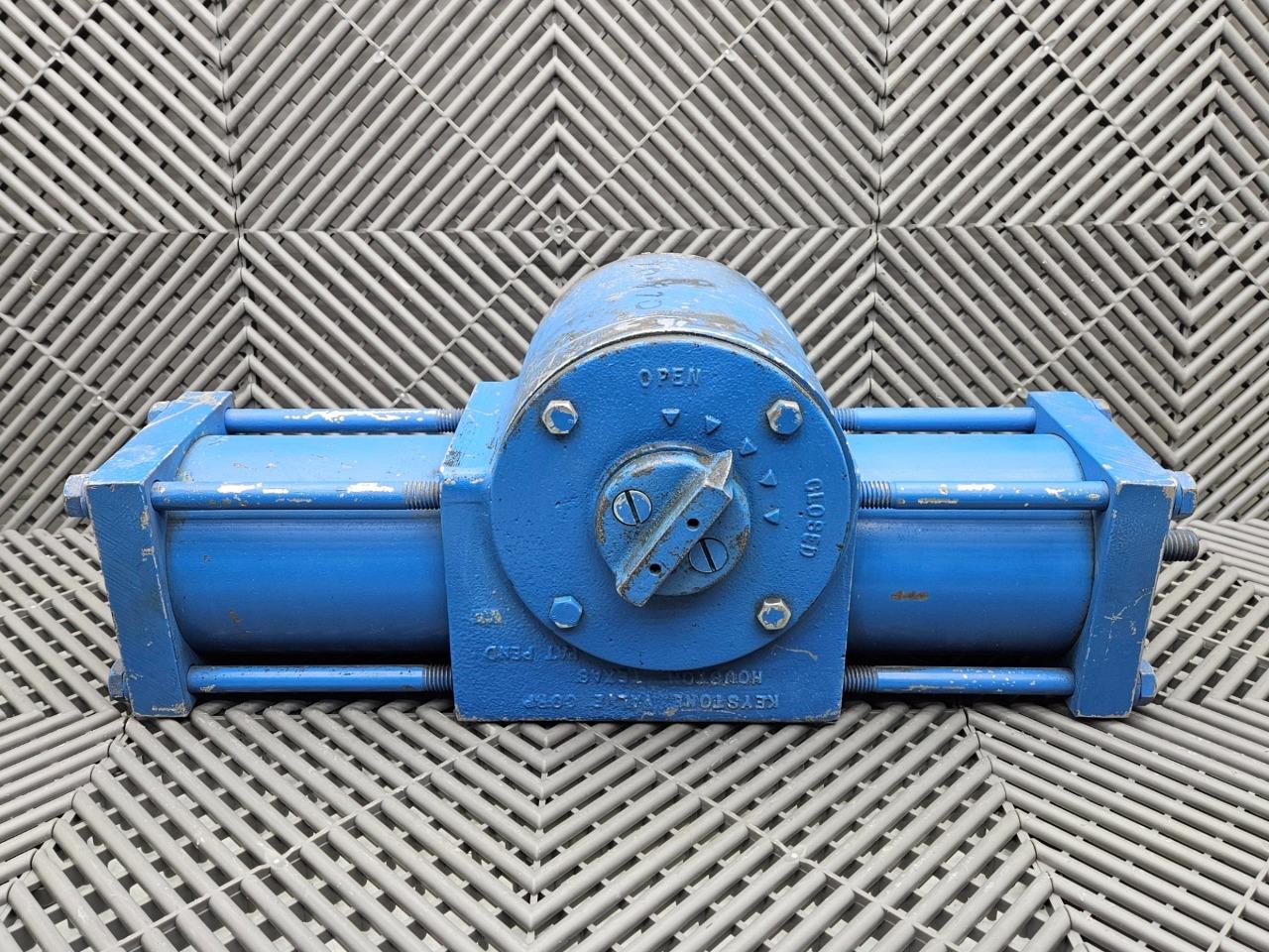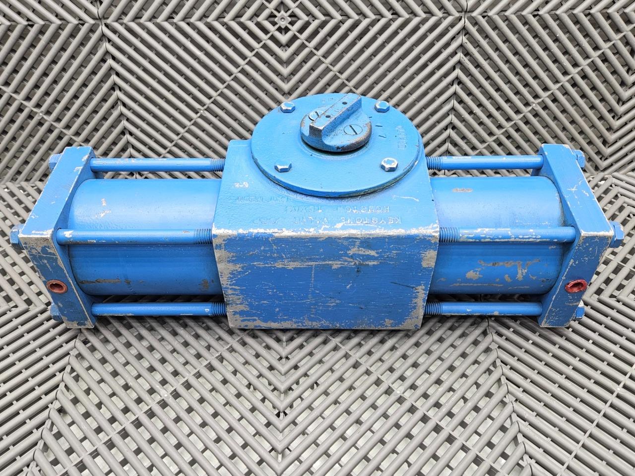 Here is a new Keystone Valve Corp Cast Iron Valve Actuator 1-1/8" Bore. This item is new and assumed to be functional with moderate cosmetic blemishes such as scratches, scuffs, and residue as shown in the pictures. The cosmetic blemishes are due to long storage life. Little is known about the item as there is no discernable part number.