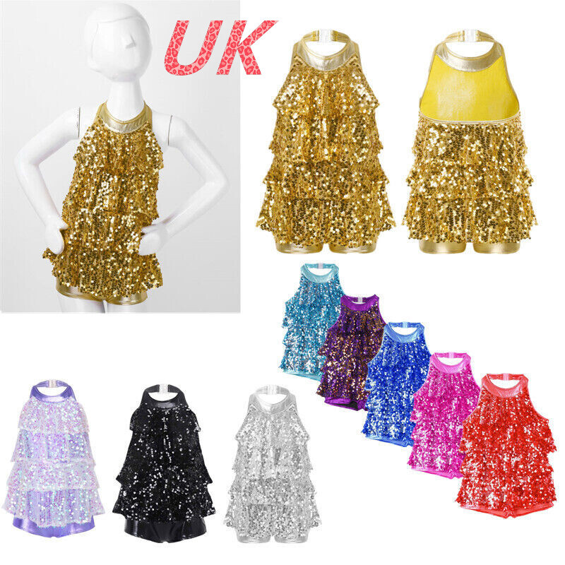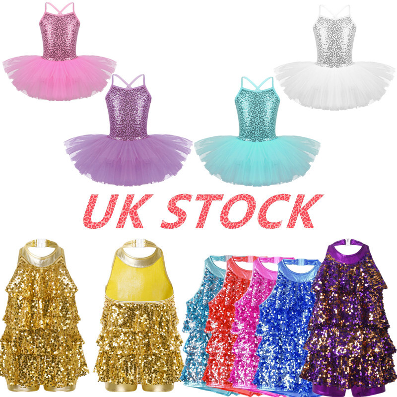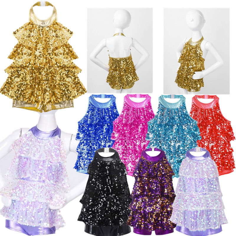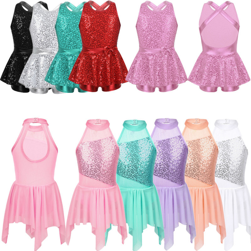 Kids Girls Round Neck Sleeveless Shiny Sequins Adorned Bodice Open Back Mesh Dance Dress.