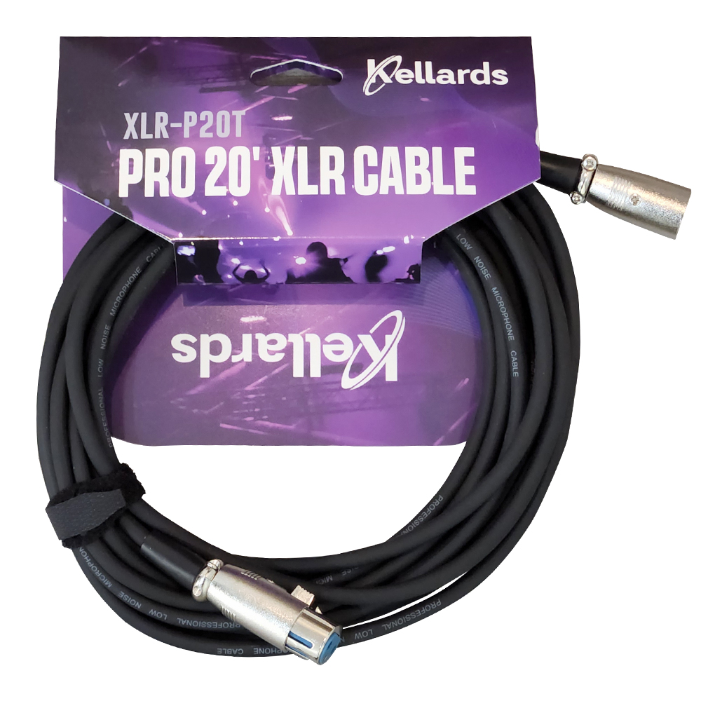 Kellards XLR-P20T Pro 20 ft XLR Microphone Cable, XLR Male to Female Cable 3-Pin Balanced Shielded Cable for Microphones, Mixers, Recording Studios, and Podcasts - Black