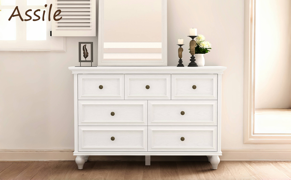 Sturdy Construction: The 7-drawer dresser is crafted from premium engineered wood with strong legs that provide stability, featuring a desktop load capacity of up to 150 lbs and each drawer capable of holding up to 33 lbs, ensuring lasting durability