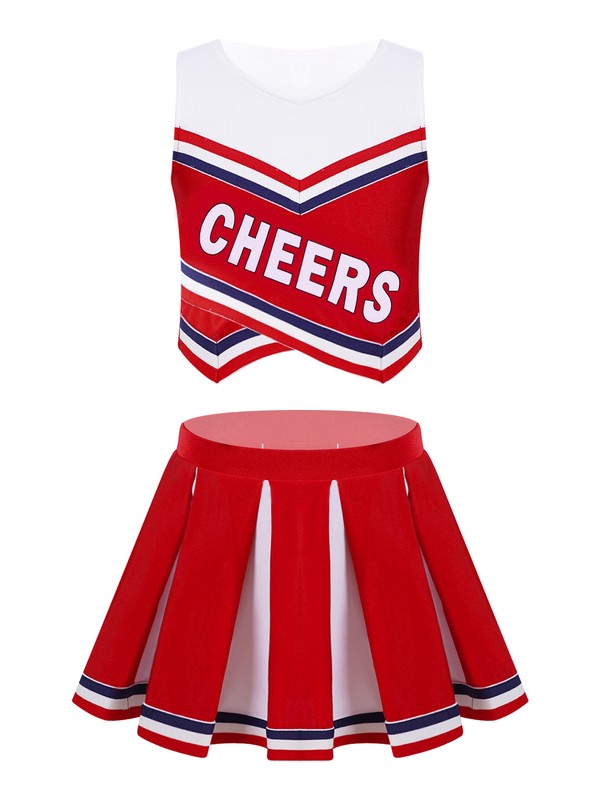 V neck, letters cheers print vest, pleated skirt, make girls very energetic.