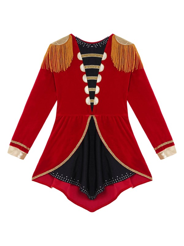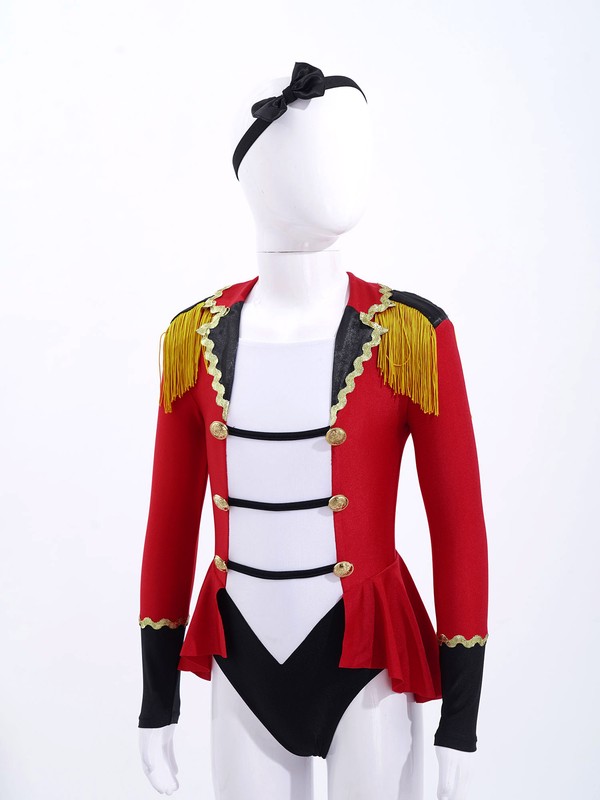Kids Girls Circus Cosplay Costume Long Sleeves Tassels Adorned Dip Hem Jumpsuit.