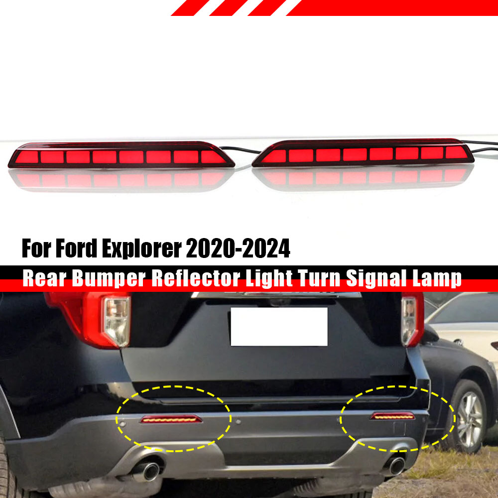 GT-Style Red Lens 4 in 1 Functions LED Rear Bumper Reflector Fog Light w/ Turn Signal Light For Ford Explorer 2020-2024
