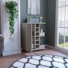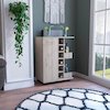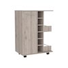 The Tuhome Bar Cart brings mobility and functionality together. The smooth open top counter(23,6''W X 14,7''D) is perfect for placing cocktails during a function or showcasing decor any other day of the week. Six cubbies vertically line (5,5'' W X 4,5''H) the middle of the unit, while a sizeable two-tiered shelf cabinet space on the left provides the perfect storage option for all your bottled needs. Two large side shelves (6,4'' W X 14,1''H) for displaying your finest spirits complete this modern, stylish piece, with the possibility to adapt in your favorite place thanks to its caster wheels.