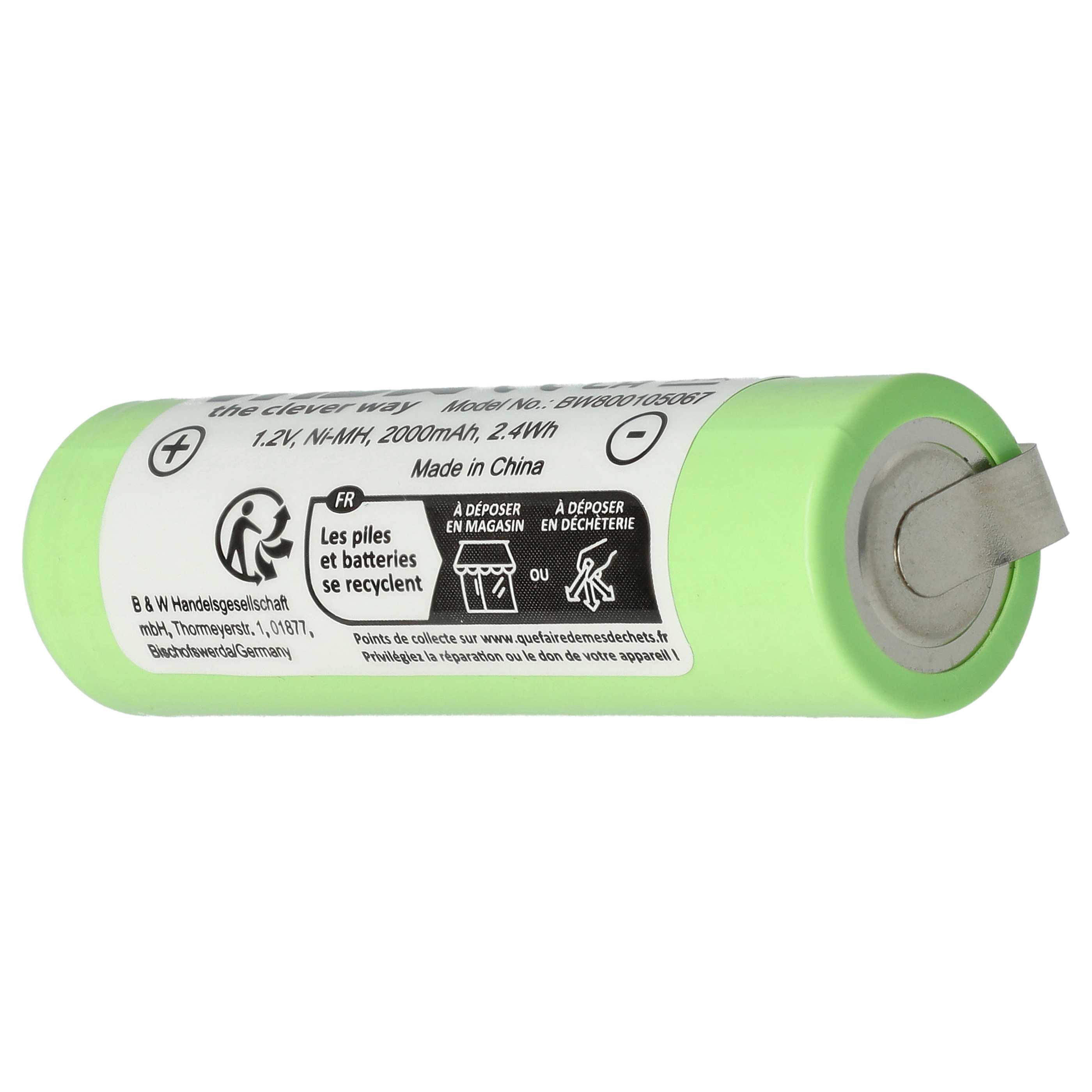 vhbw leistungsfähiger Ersatz-Akku für Philips HQT788, HS199 Rasierapperat, Trockenrasierer (NiMH, 2000mAh, 1,2V)