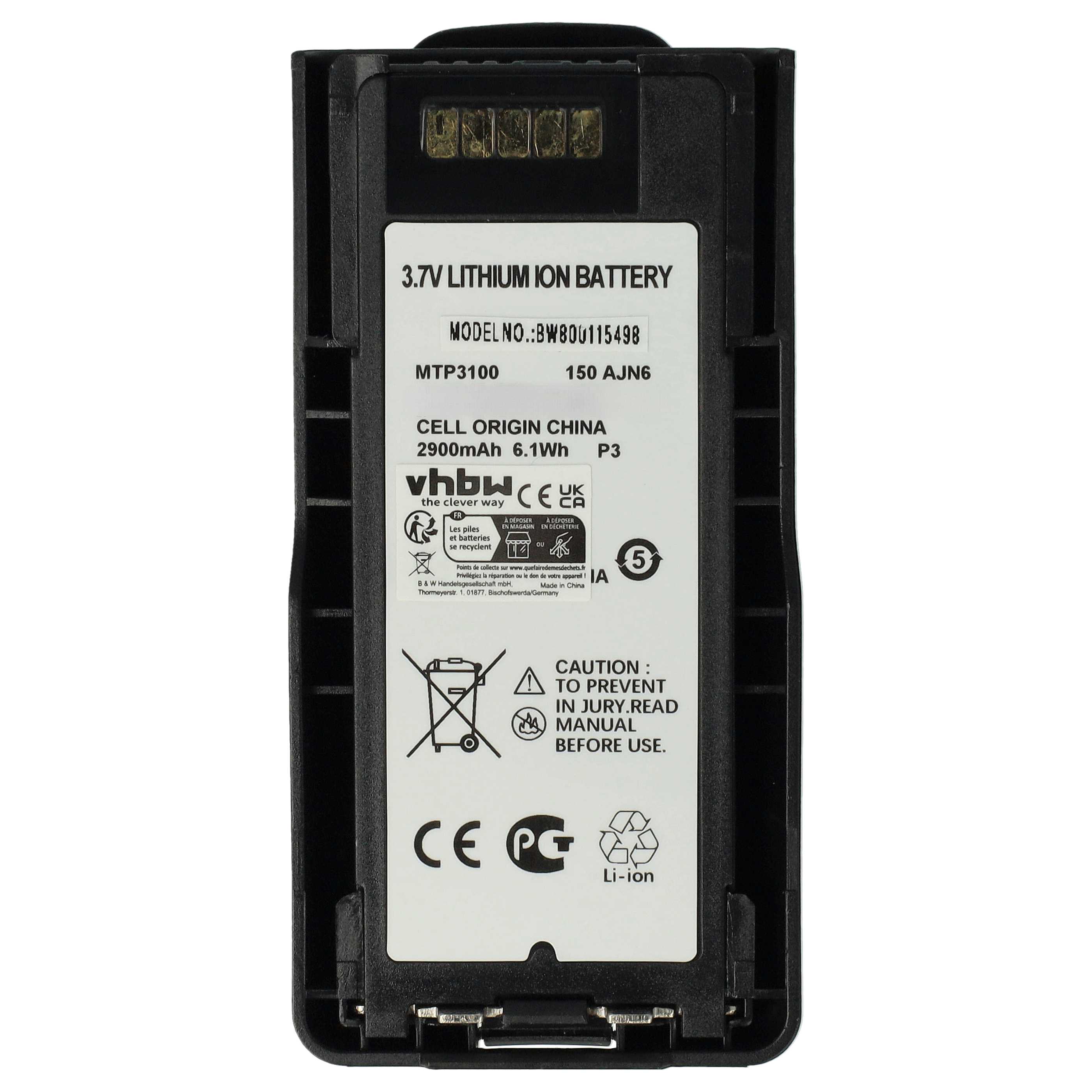 vhbw leistungsfähiger Ersatz-Akku für Motorola Tetra MTP3550, MTP6550, MTP6600, MTP6750, MTP6650 Funkgerät oder Walkie-Talkie (Li-Ion, 2900mAh, 3,7V)