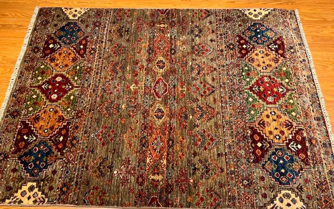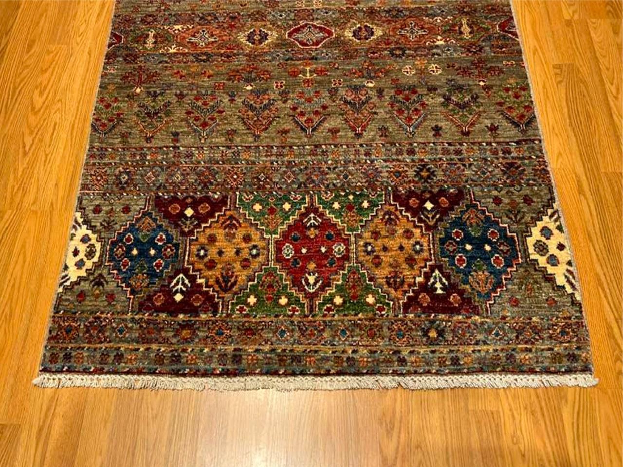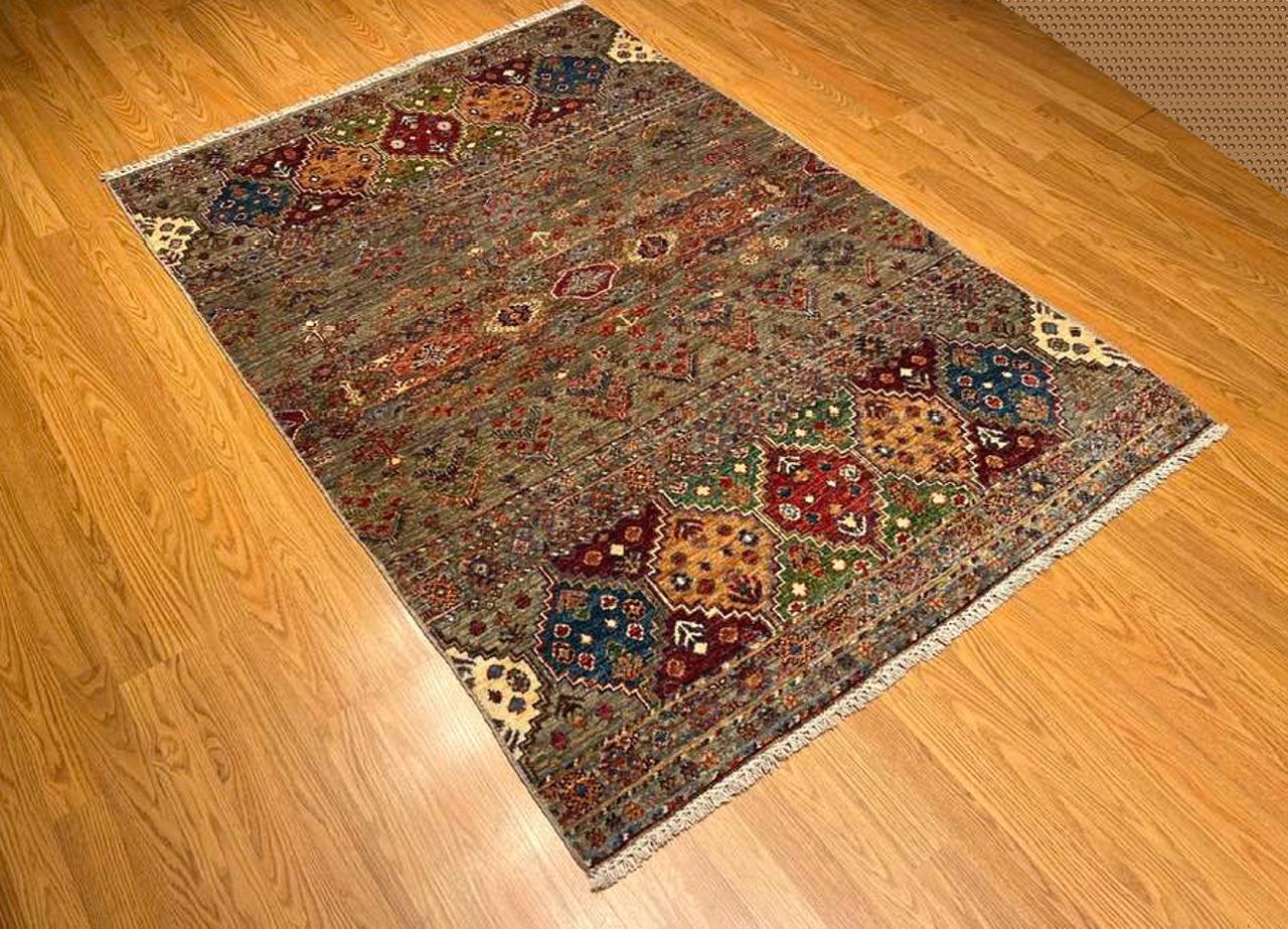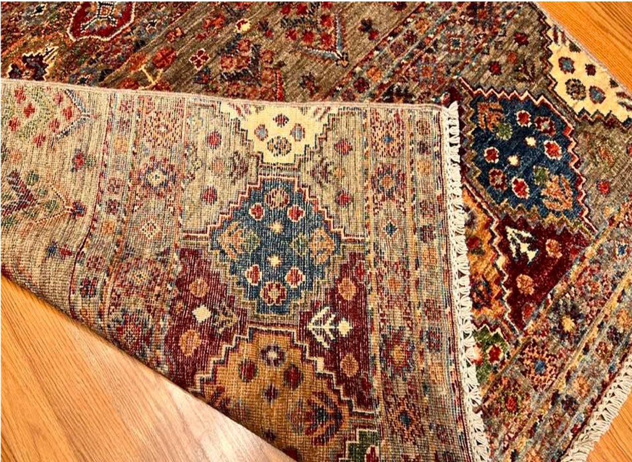 For thousands of years, weavers spun wool by hand to create the yarn that makes up the pile of Oriental rugs. By about World War Two, nearly all wool was spun by machines. Now, since about 1985, a small but appreciable number of weavers are again spinning wool by hand. Though a few people prefer the uniformity and formal appearance that machine spun wool imparts to carpets, most collectors and connoisseurs value the effect produced by hand spun wool. When spun by hand, yarn absorbs more dye where it is loosely spun and less dye where it is spun tightly, thus producing pleasant variegation in the colors of a rug. Though there is room for disagreement, I believe that the best Oriental rugs are woven with hand spun wool.