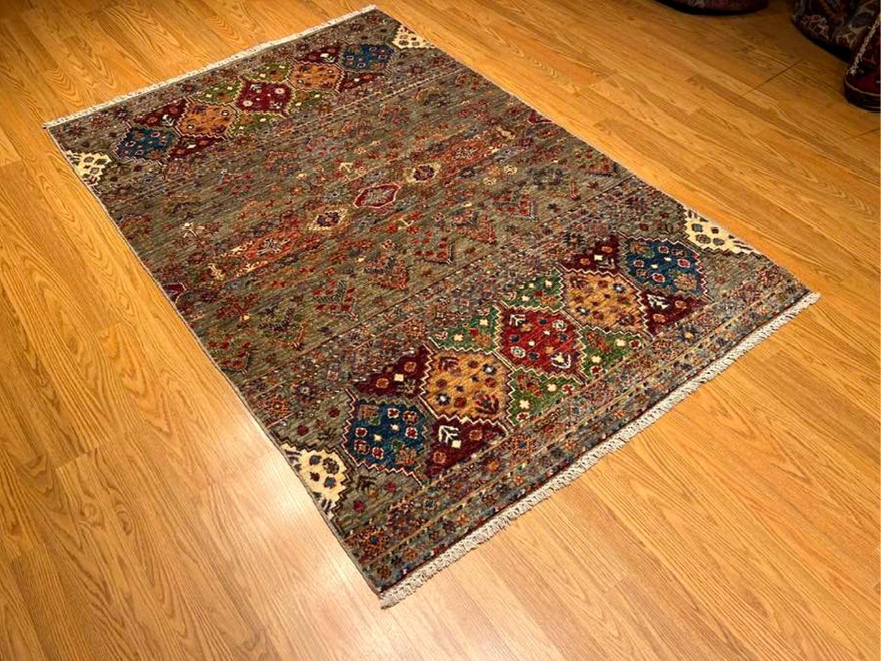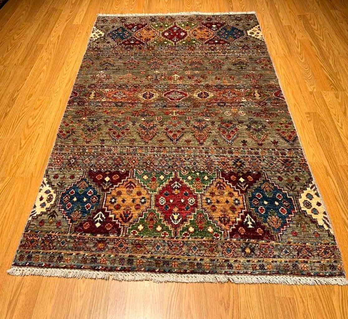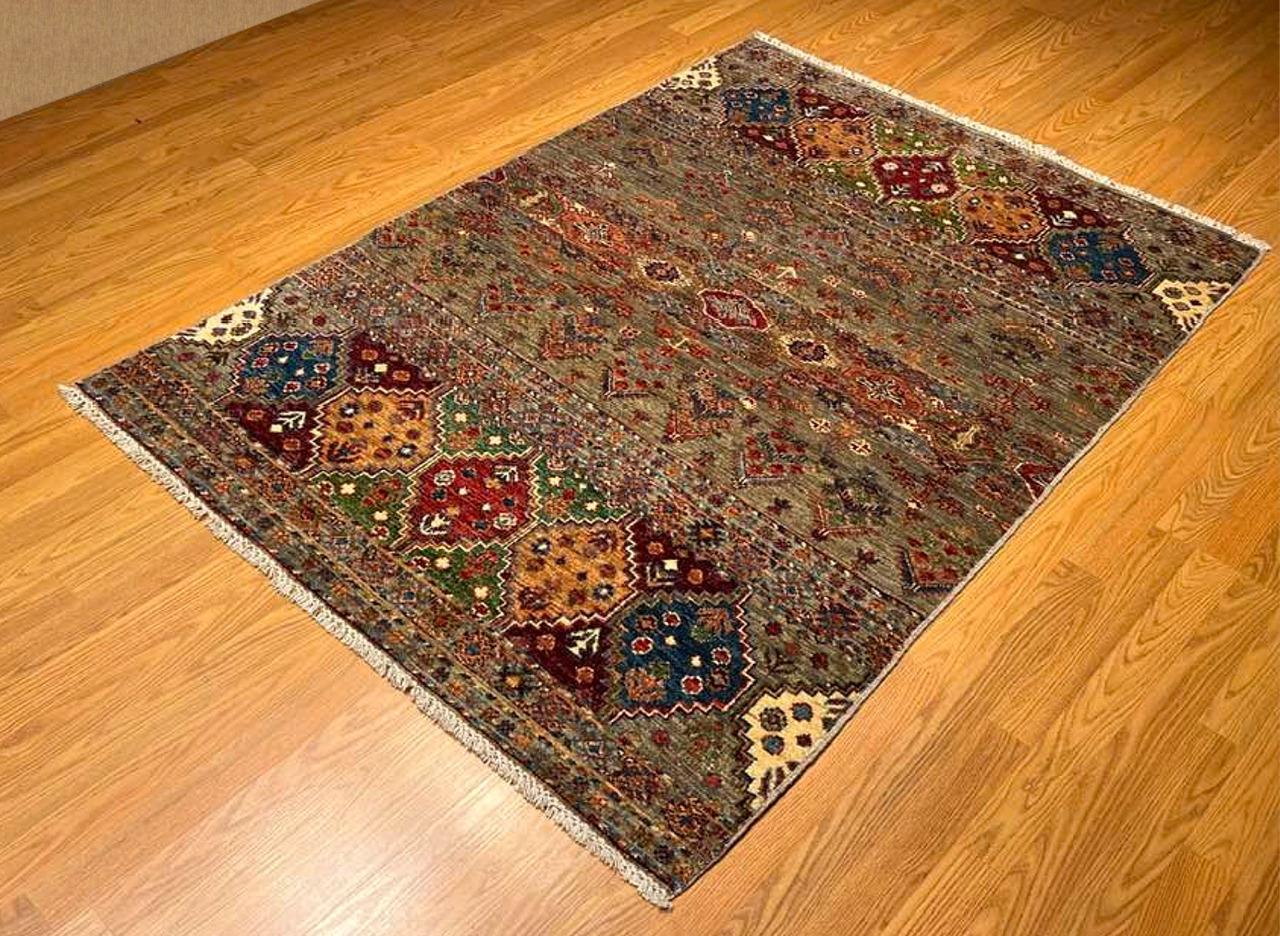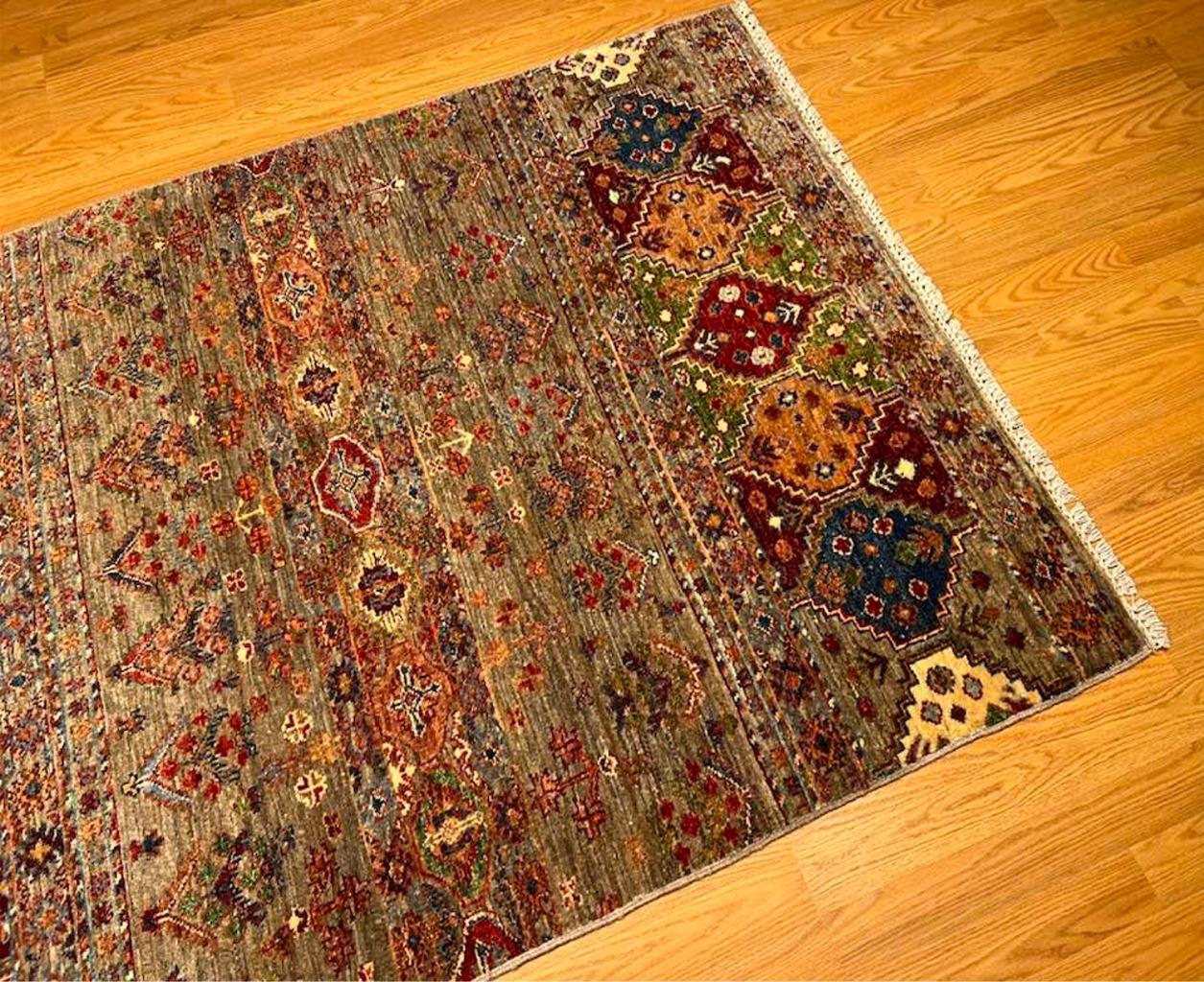 For thousands of years, weavers spun wool by hand to create the yarn that makes up the pile of Oriental rugs. By about World War Two, nearly all wool was spun by machines. Now, since about 1985, a small but appreciable number of weavers are again spinning wool by hand. Though a few people prefer the uniformity and formal appearance that machine spun wool imparts to carpets, most collectors and connoisseurs value the effect produced by hand spun wool. When spun by hand, yarn absorbs more dye where it is loosely spun and less dye where it is spun tightly, thus producing pleasant variegation in the colors of a rug. Though there is room for disagreement, I believe that the best Oriental rugs are woven with hand spun wool.