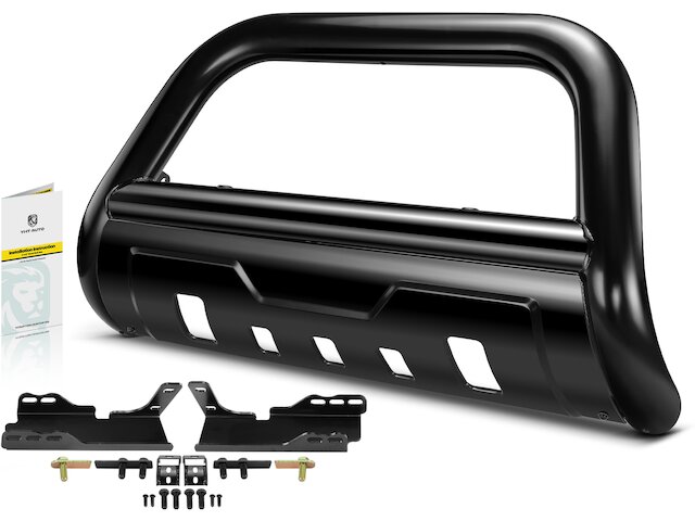 Product Remark: Front Bumper Bull Bar -- 3.5" Carbon steel bull bar bumper grille guard with formed skid plate & skid plate light mounting bracket. Tow hooks cannot be reinstalled with the bull bar. The bull bar may interfere with front mounted sensors
