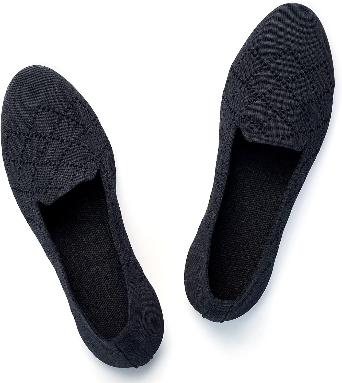 Puxowe Ballet Flats for Women - Stretch Knit Slip-On Low Wedge Shoes, Soft Round Toe Design for Office, Travel & Daily Walking