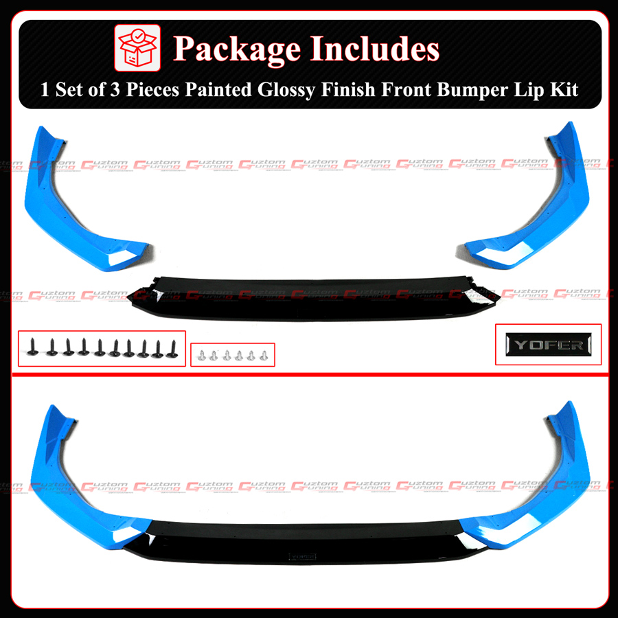 - Package Includes : 1 Set of 3 Piece Yofer Design Front Bumper Lip With Accessories Shown In Pictures