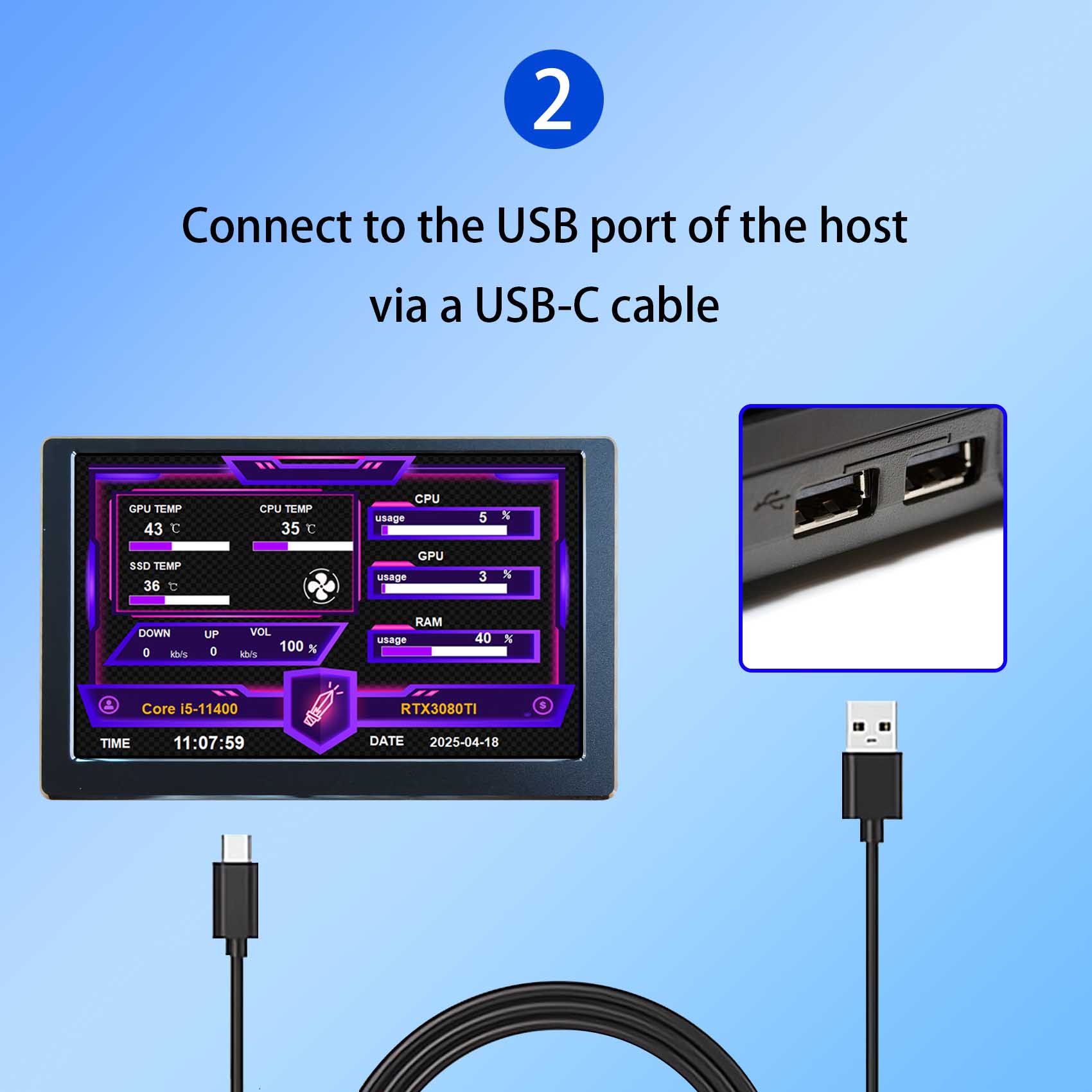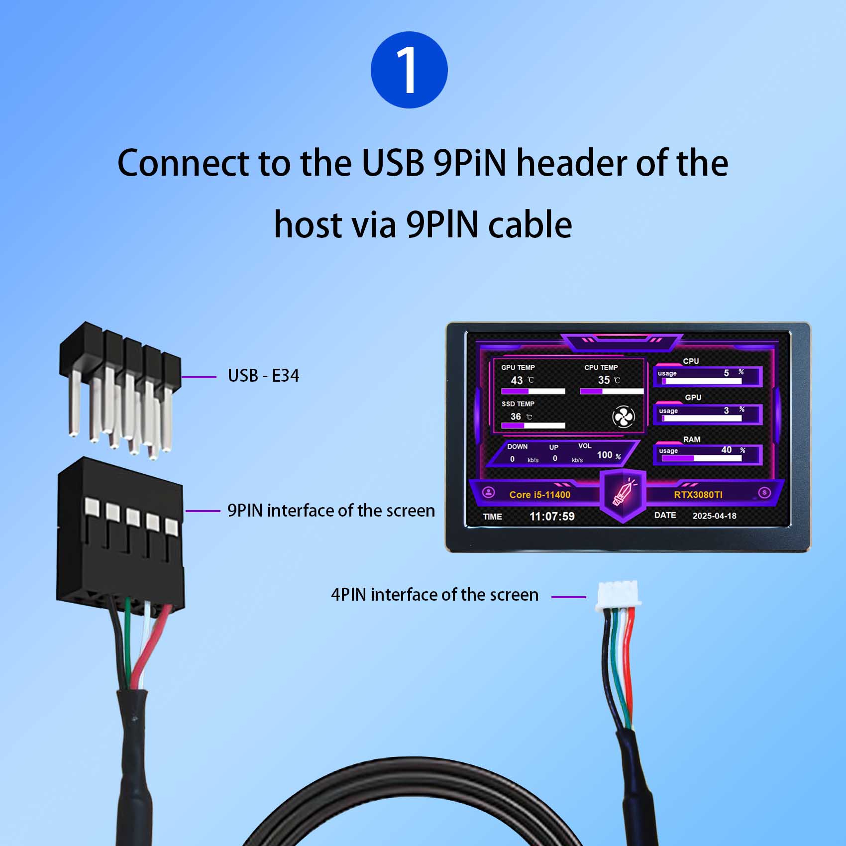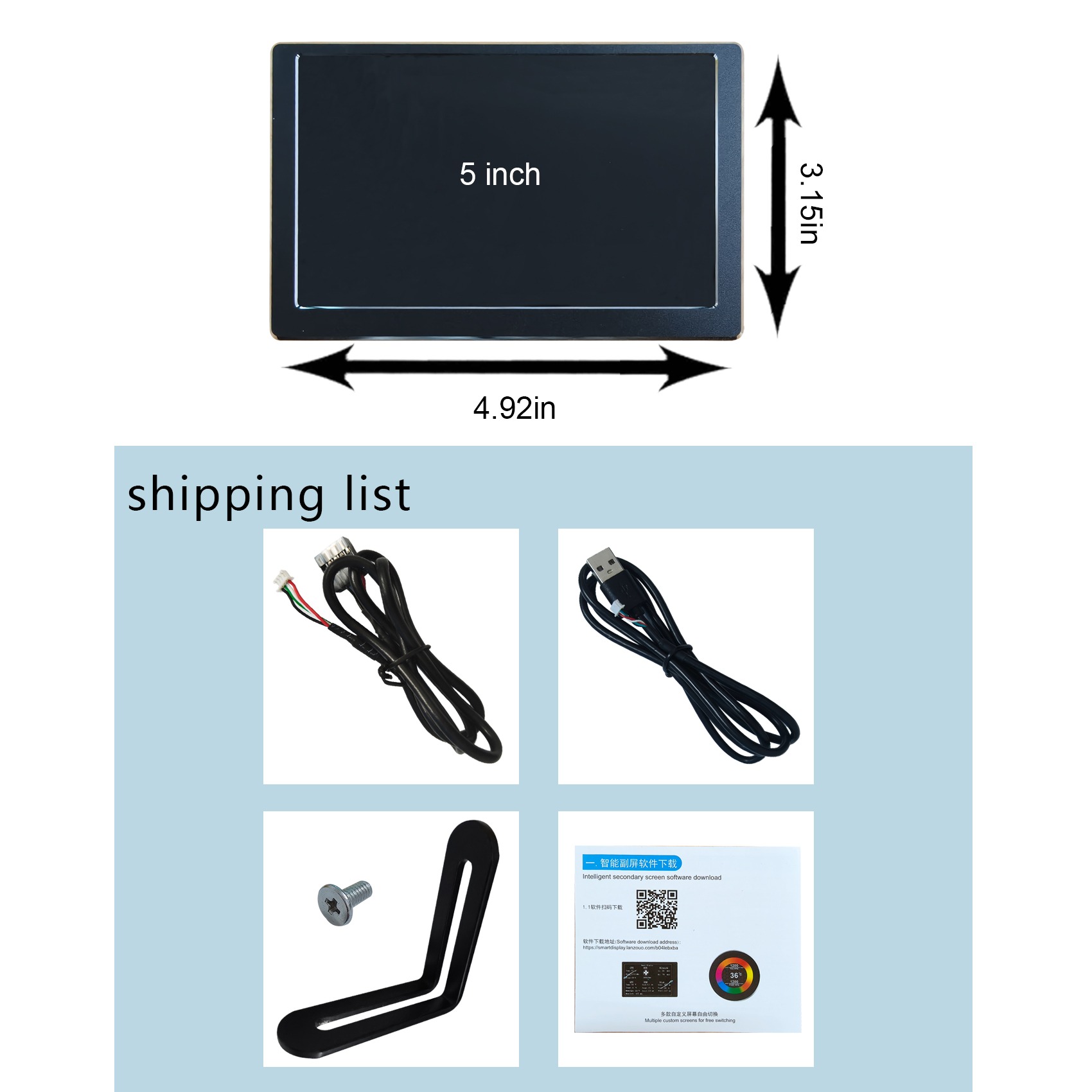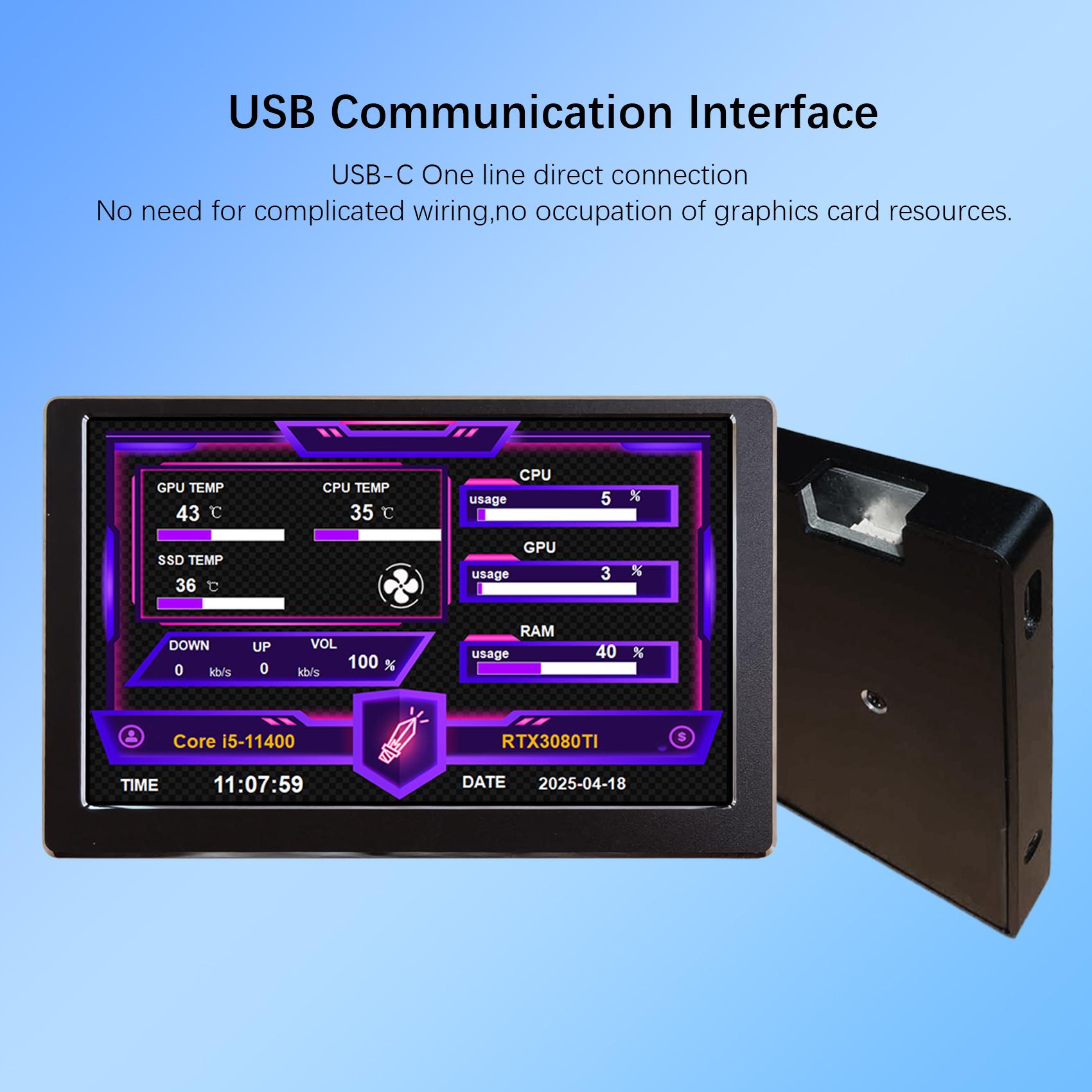 1x 5 inch VS050SW01 Black AIO Computer Temp LCD Monitor (with self-developed software)