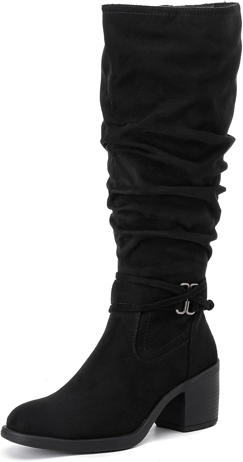 Women's Slouchy Knee High Boots Riding Combat Boots with Chunky Heel,Comfortable and Fashionable for Fall and Winter Wear for Women.