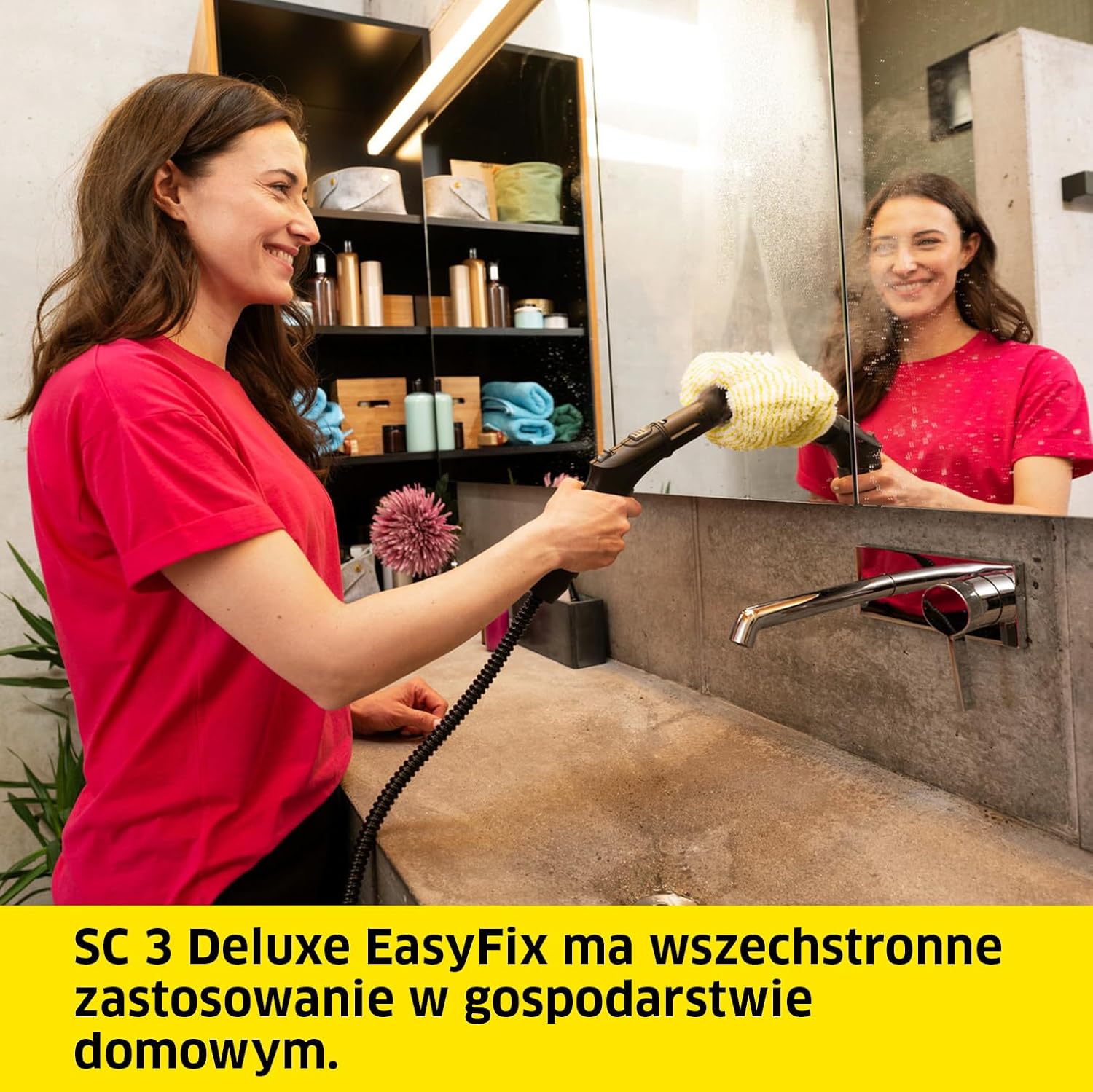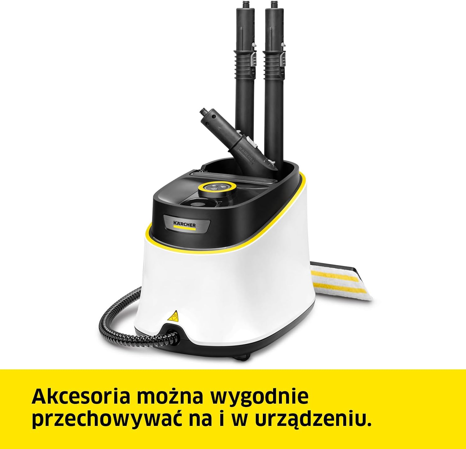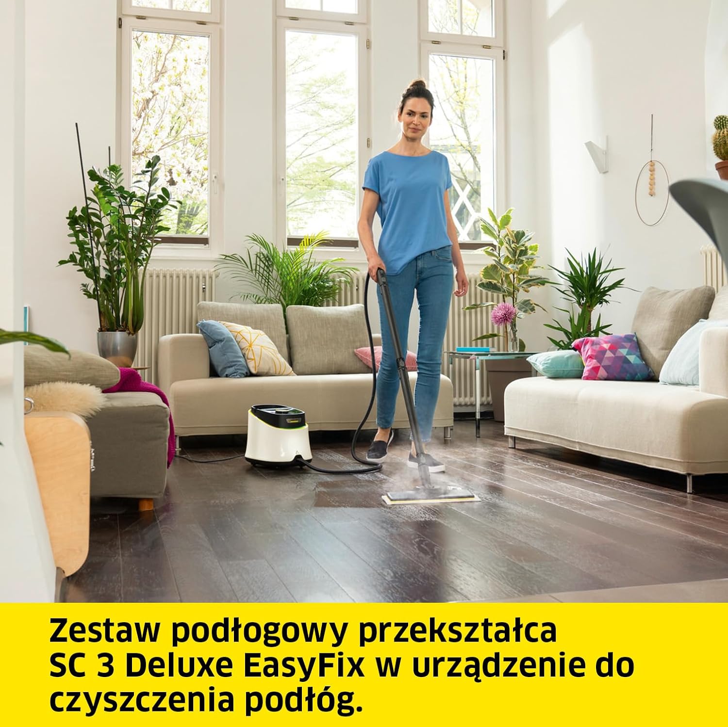 Hygienische Reinigung: Der Kärcher SC 3 Deluxe EasyFix Dampfreiniger entfernt zuverlässig Schmutz und beseitigt bis zu 99,999% der Viren* und Bakterien** von harten Oberflächen im Haushalt Schnelligkeit: Der Dampfreiniger hat eine kurze Aufheizzeit von nur 30 Sekunden. Wenn die LED am Gerät grün leuchtet, ist er einsatzbereit und Sie können mit der Reinigung beginnen Ununterbrochene Reinigung: Der große 1-Liter-Tank kann während des Gebrauchs nachgefüllt werden. Pausen zum Aufheizen des Geräts sind nicht erforderlich. Stauraum für Zubehör: Zusätzliche Düsen, Bürsten und ein Bodenreinigungsset sind im Lieferumfang der SC 3 Deluxe EasyFix Waschmaschine enthalten. Das Zubehör lässt sich bequem in der Maschine verstauen. Lieferumfang: Das Set beinhaltet den Dampfreiniger SC 3 Deluxe EasyFix mit Entkalkerpatrone, Bodenreinigungsset, Hand- und Punktdüse, Rund- und Fugenbürste sowie Reinigungstücher.