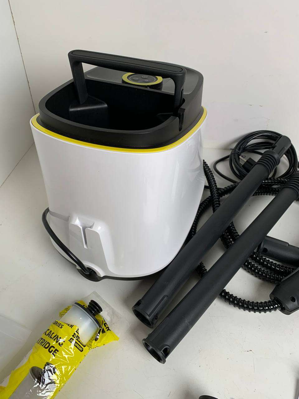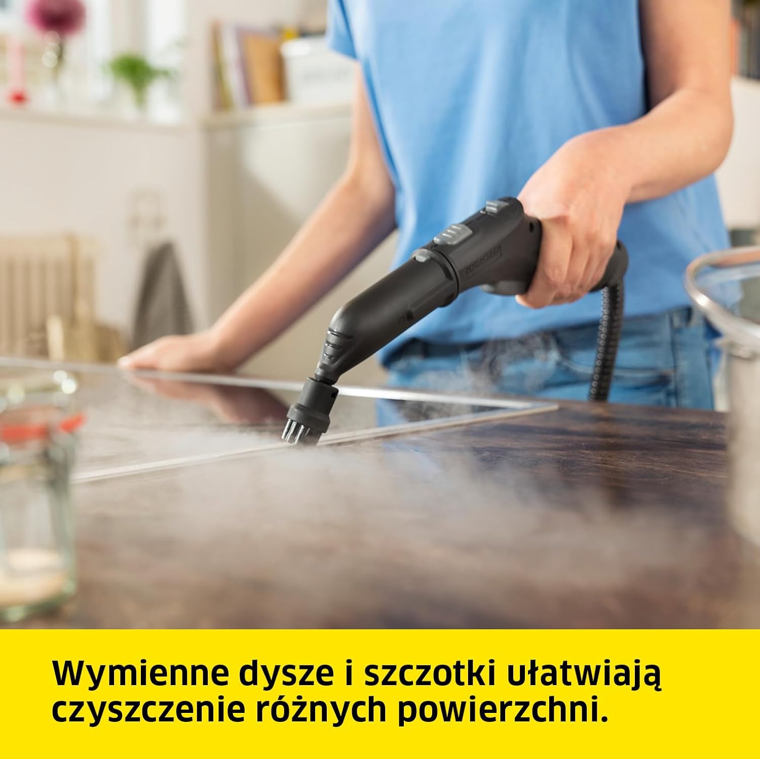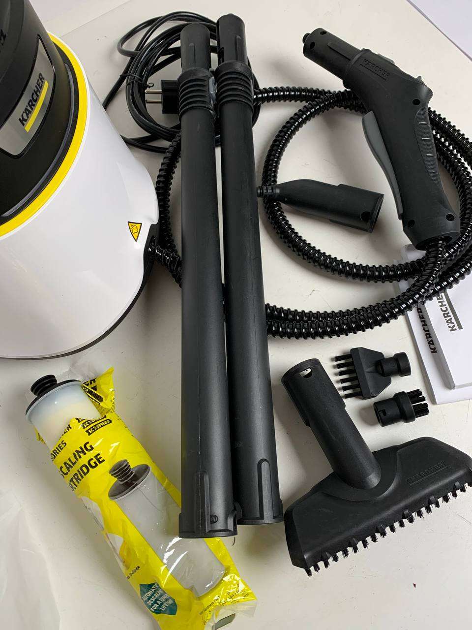 Hygienische Reinigung: Der Kärcher SC 3 Deluxe EasyFix Dampfreiniger entfernt zuverlässig Schmutz und beseitigt bis zu 99,999% der Viren* und Bakterien** von harten Oberflächen im Haushalt Schnelligkeit: Der Dampfreiniger hat eine kurze Aufheizzeit von nur 30 Sekunden. Wenn die LED am Gerät grün leuchtet, ist er einsatzbereit und Sie können mit der Reinigung beginnen Ununterbrochene Reinigung: Der große 1-Liter-Tank kann während des Gebrauchs nachgefüllt werden. Pausen zum Aufheizen des Geräts sind nicht erforderlich. Stauraum für Zubehör: Zusätzliche Düsen, Bürsten und ein Bodenreinigungsset sind im Lieferumfang der SC 3 Deluxe EasyFix Waschmaschine enthalten. Das Zubehör lässt sich bequem in der Maschine verstauen. Lieferumfang: Das Set beinhaltet den Dampfreiniger SC 3 Deluxe EasyFix mit Entkalkerpatrone, Bodenreinigungsset, Hand- und Punktdüse, Rund- und Fugenbürste sowie Reinigungstücher.