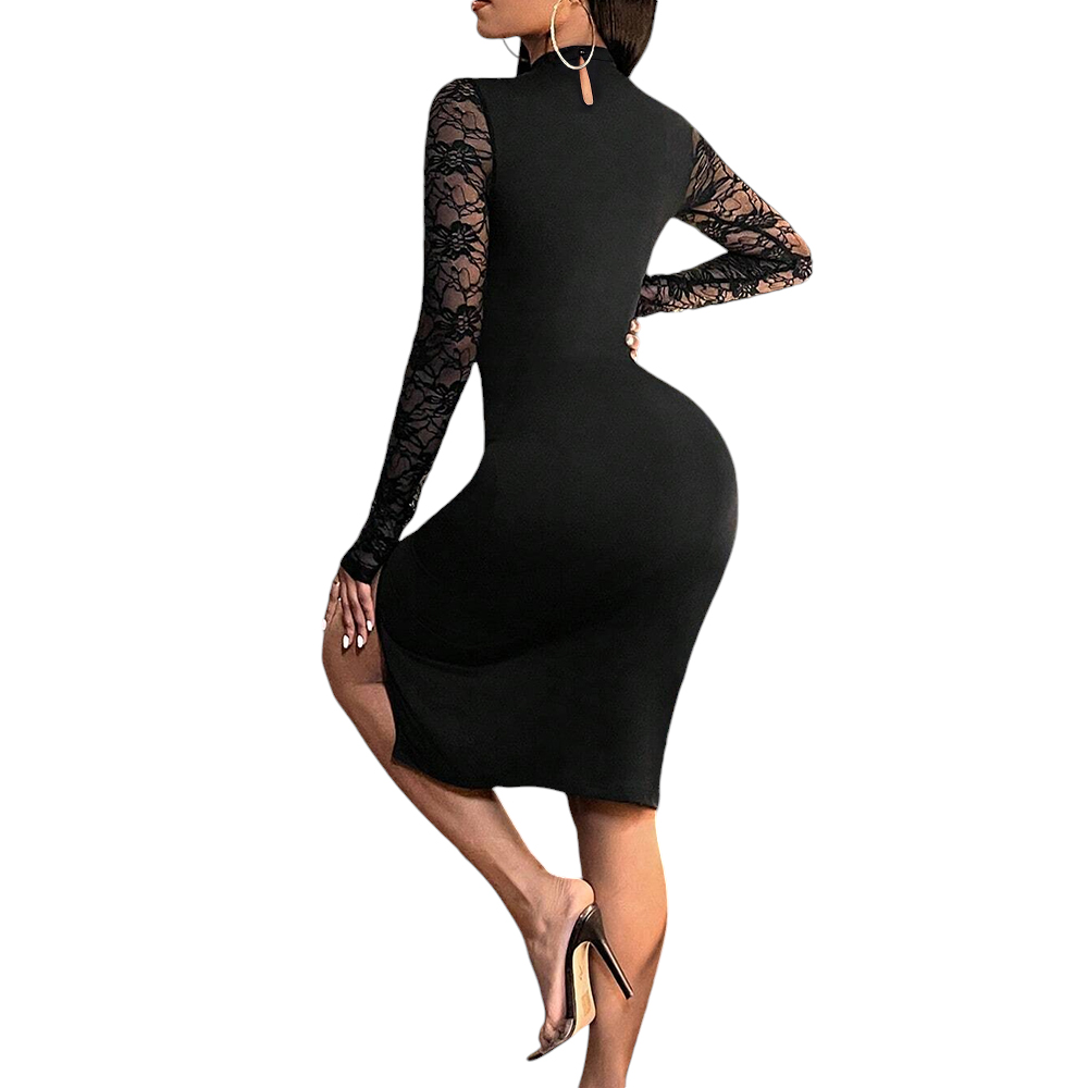 • Women Sexy Bodycon Backless Midi Dress Lady Long Sleeve Club Party Pencil Dress