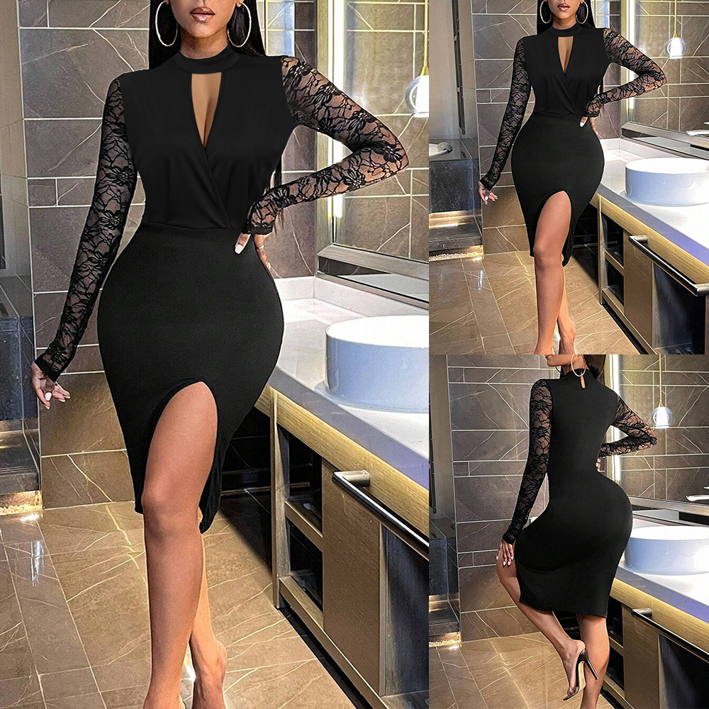 • PLUS SIZE Sexy Womens Lace Cold Shoulder Midi Dress Cocktail Party Evening Dress