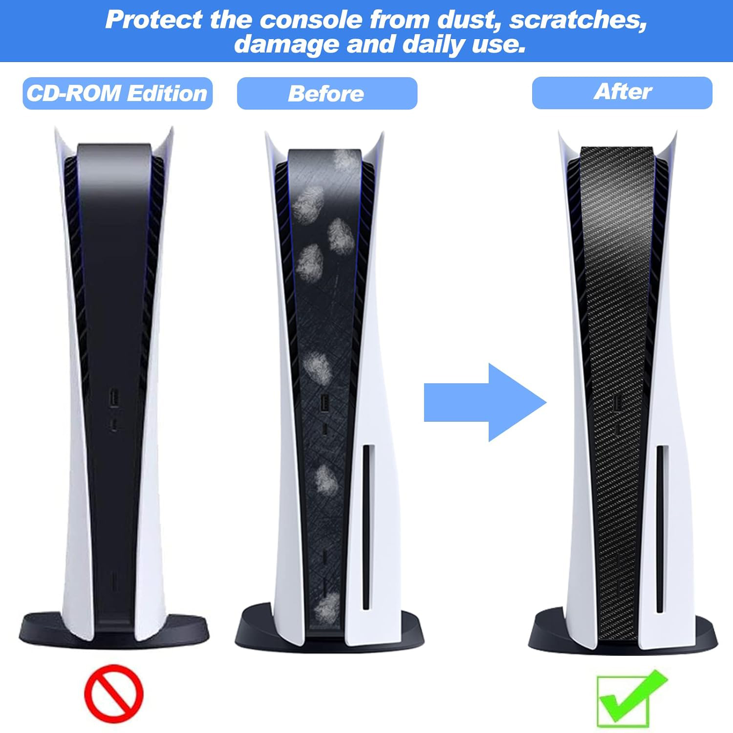 Specially Designed for PS5--Suitable for the middle skin of the PS-5 disc version console, the integral type has no gaps between nodes. It can protect the center of the game console skin from fingerprints, dust, and scratches so that the console is always as clean as new.